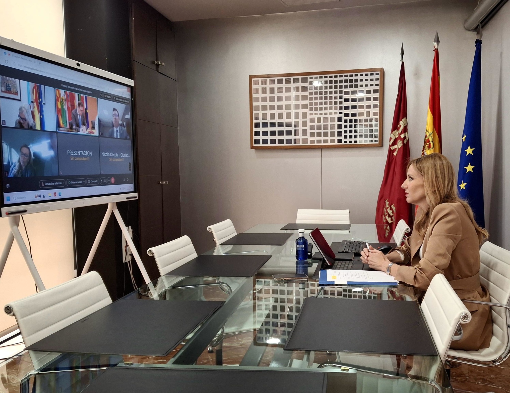 La consejera de Empresa, Empleo y Economía Social, Marisa López Aragón, durante la videoconferencia de la Sectorial de Internacionalización