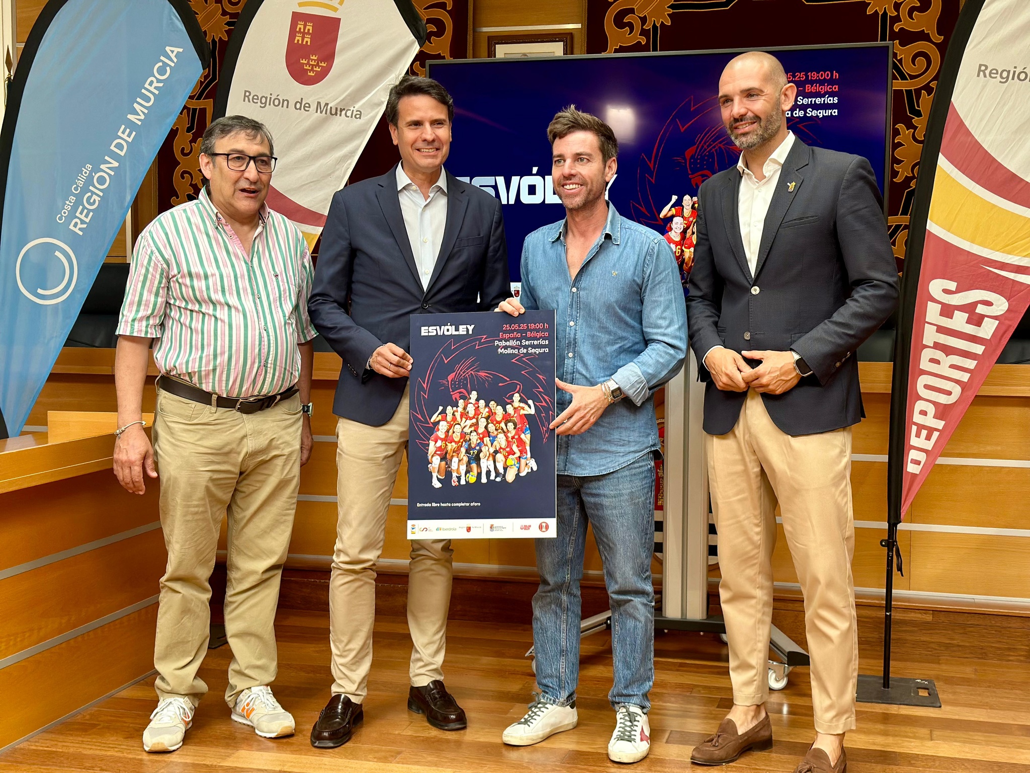 El director general de Deportes, con el alcalde de Molina de Segura en la presentación de los partidos de la selección femenina de voleibol