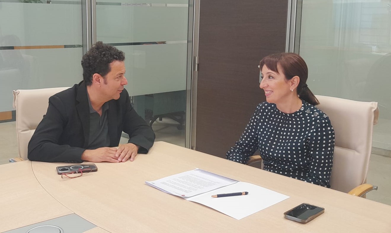 El director general del Instituto de las Industrias Culturales y las Artes, Manuel Cebrián, y la alcaldesa de Bullas, María Dolores Muñoz, firman la adhesión del municipio a Región de Murcia Film Commission