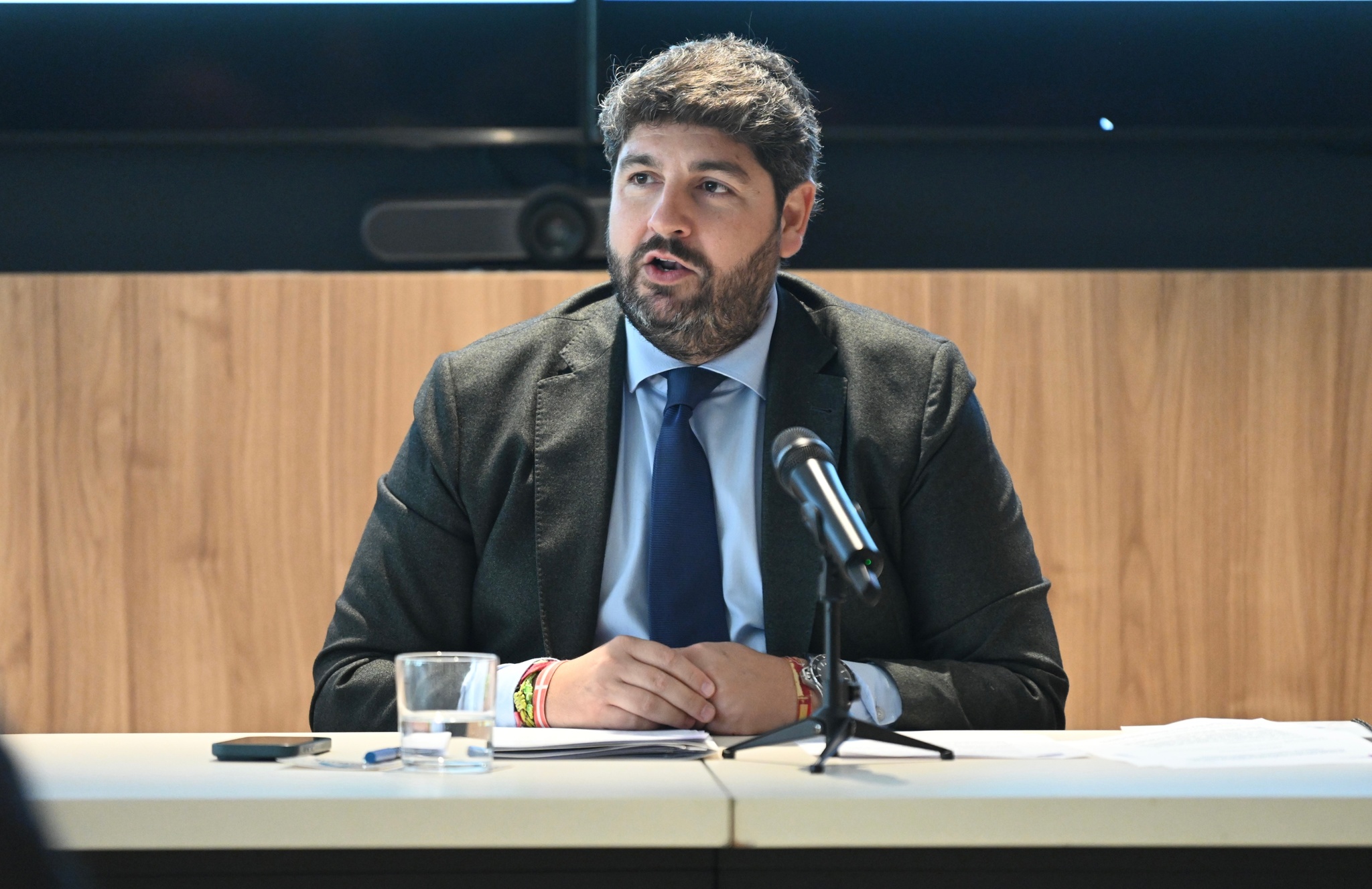 López Miras, junto al presidente del Consejo Jurídico de la Región, Antonio Gómez Fayrén, y la profesora de la Cátedra de Políticas Públicas de la Universidad de Murcia, María Quiles, durante la presentación del libro: '40 años de autonomía en la Región de Murcia (1982-2022) volumen II. Instituciones, política y gobierno' (3)