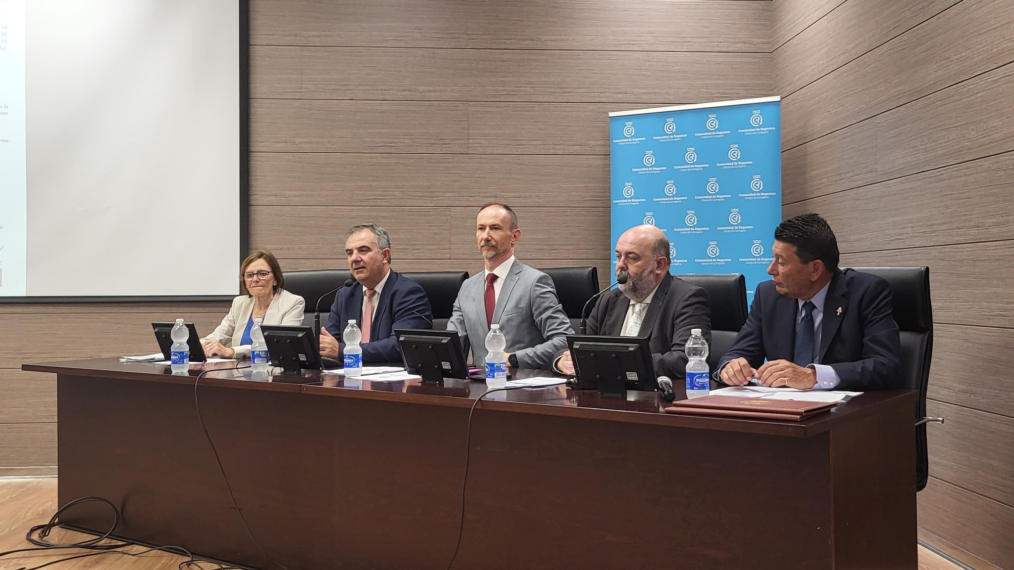 El consejero de Medio Ambiente, Universidades, Investigación y Mar Menor, Juan María Vázquez, junto al rector de la Universidad Politécnica de Cartagena (UPCT), Mathieu Kessler, en la inauguración de las ‘Jornadas de investigación e innovación. Estrategias para un regadío sostenible en el Campo de Cartagena’.