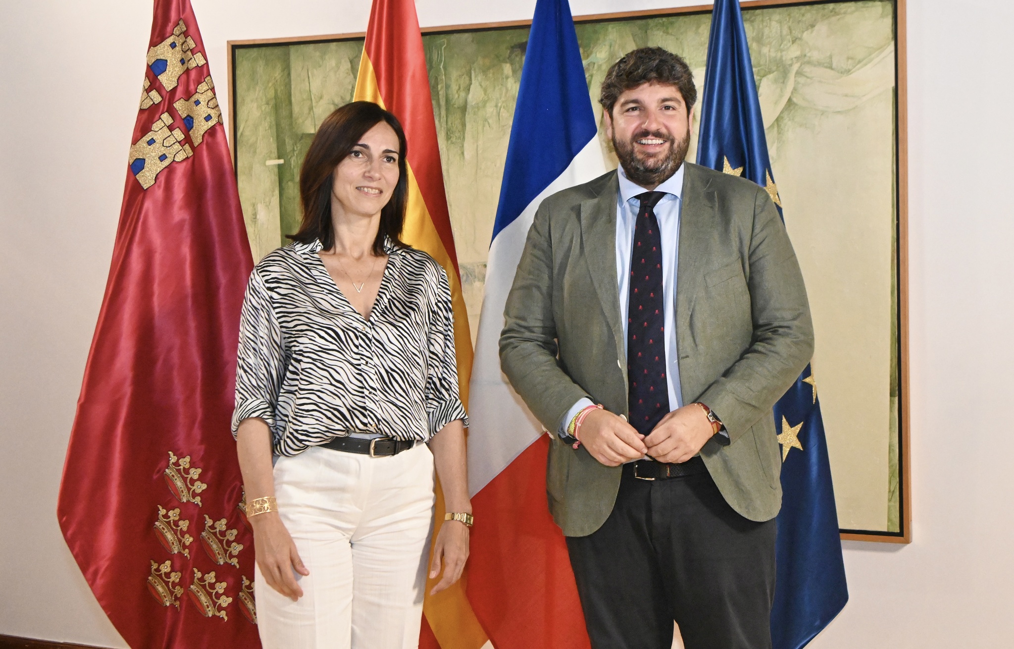 El presidente de la Comunidad, Fernando López Miras, recibe a la cónsul general de Francia en Madrid, Nathalie Berthy