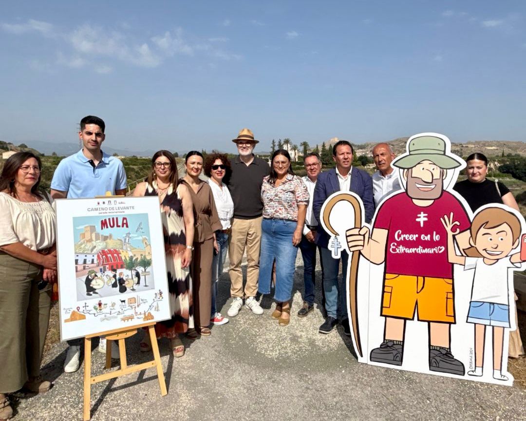 La localidad de Mula cuenta desde hoy con su propio cartel informativo del Camino de Levante de la Vera Cruz ilustrado por el dibujante José Manuel Puebla, una iniciativa del Gobierno de la Región de Murcia que busca promocionar de forma creativa y emocional a los municipios que forman parte de esta ruta hacia Caravaca de la Cruz. El cartel ha sido presentado esta mañana por la directora general de Competitividad y Calidad Turísticas, Eva Reverte, junto al propio autor y al alcalde de Mula, Juan Jesús Moreno.