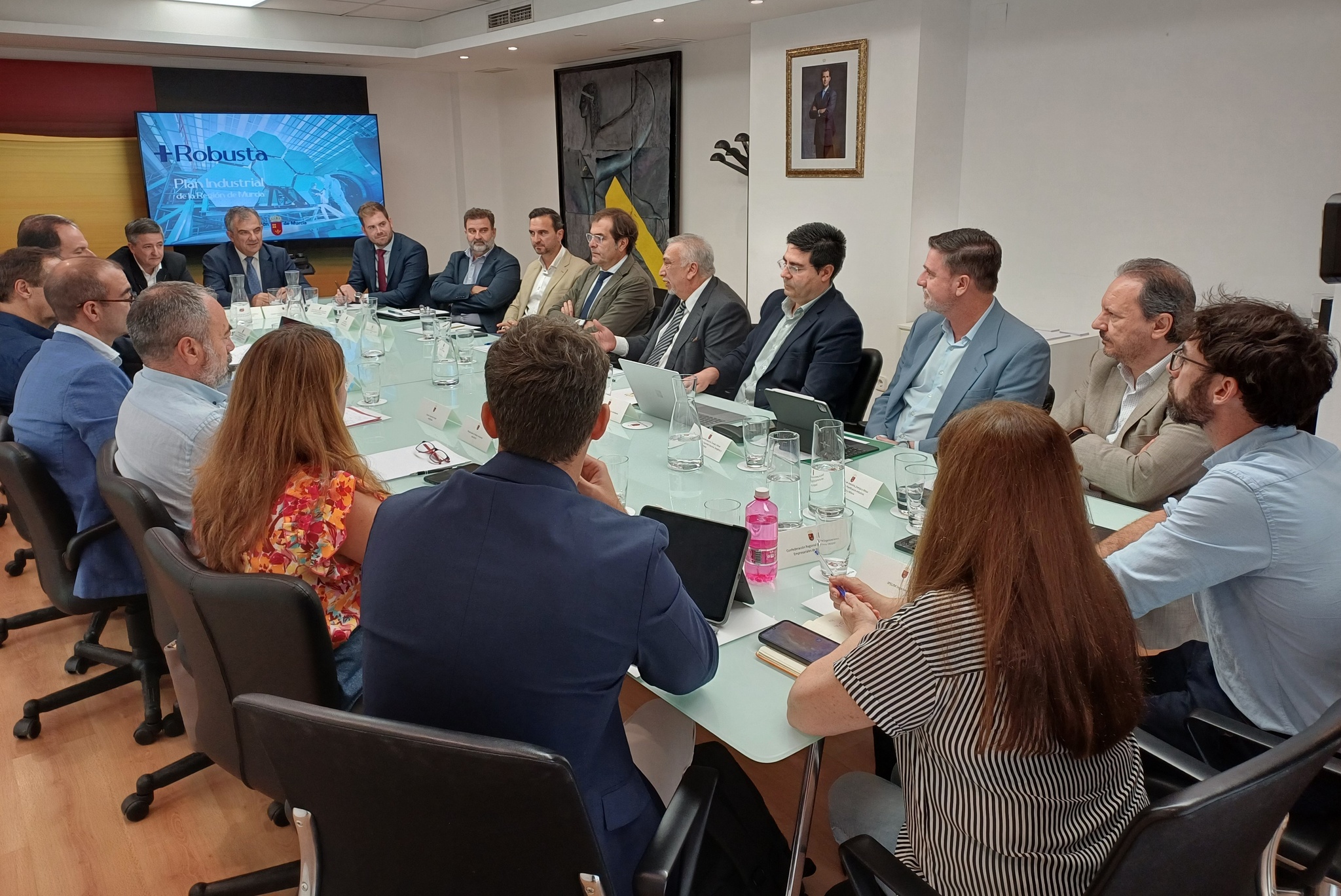 El consejero de Medio Ambiente, Universidades, Investigación y Mar Menor, Juan María Vázquez, durante la reunión del grupo de trabajo 'Más Robusta', para elaborar el Plan Industrial de la Región de Murcia.