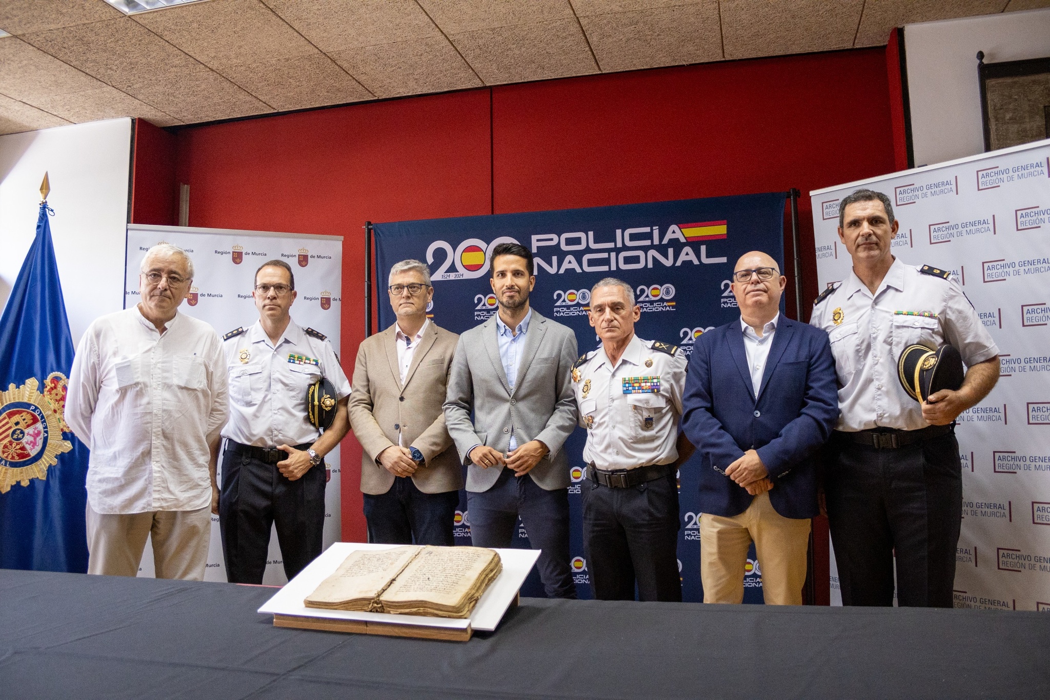 El director general de Patrimonio Cultural, Patricio Sánchez, con representantes del Archivo regional, la Policía Nacional y el Gobierno de Aragón.