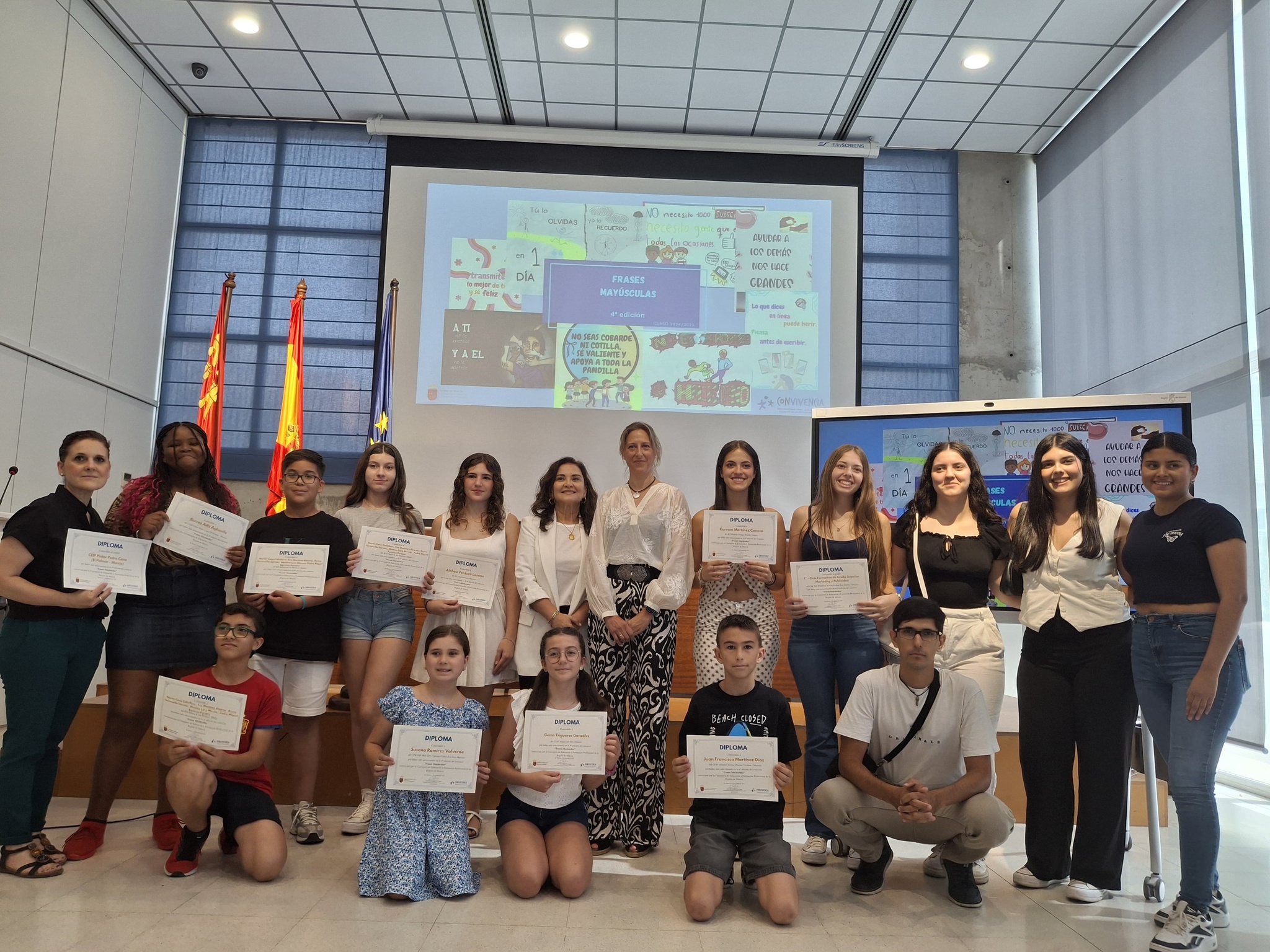 Alumnos y docentes ganadores del Programa 'Frases mayúsculas' junto a la directora general de Recursos Humanos, Planificación Educativa e Innovación, Carmen Balsas