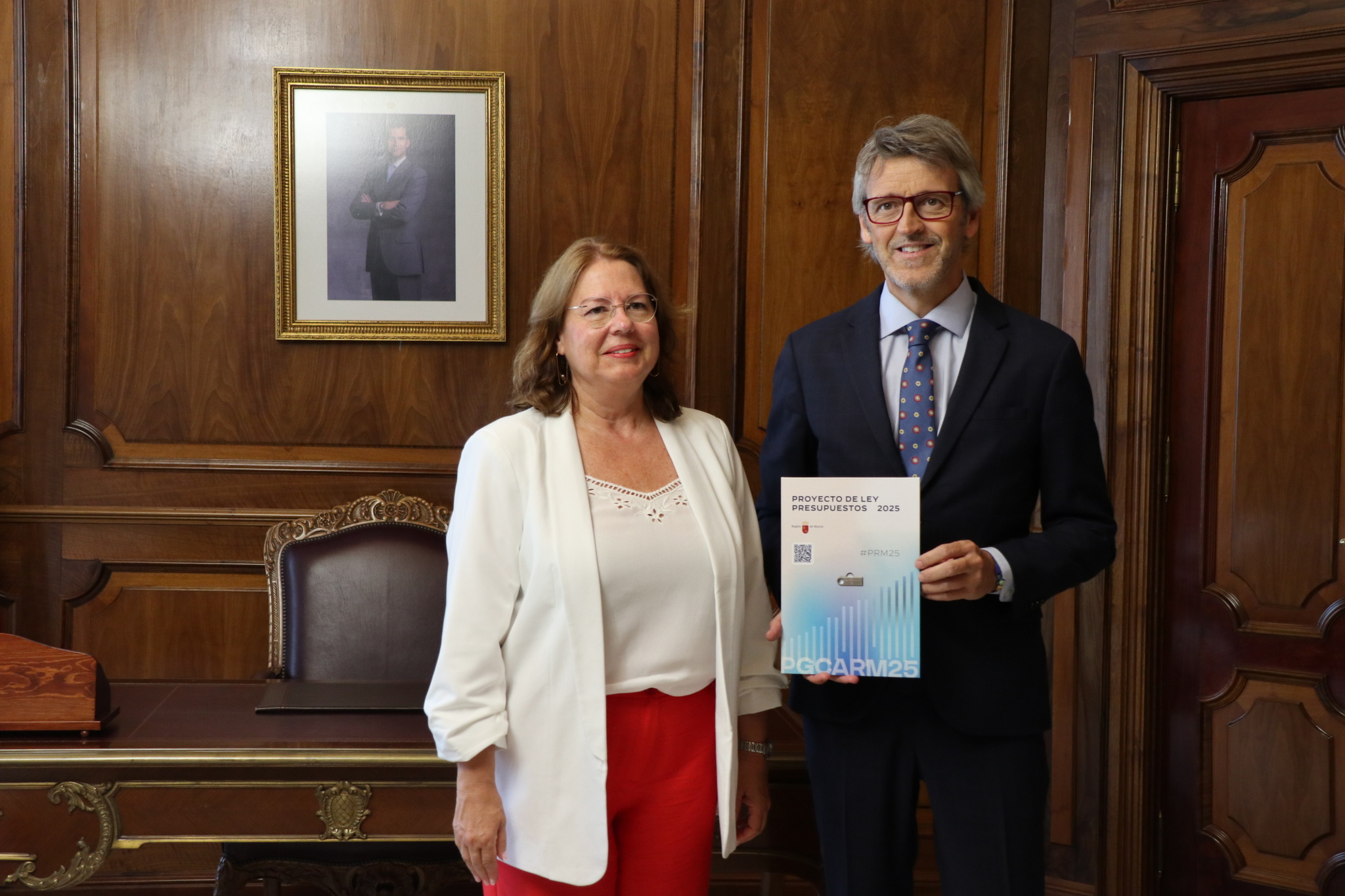 El consejero de Economía, Hacienda, Fondos Europeos y Transformación Digital, Luis Alberto Marín, hace entrega del proyecto de Presupuestos a la presidenta de la Asamblea Regional, Visitación Martínez