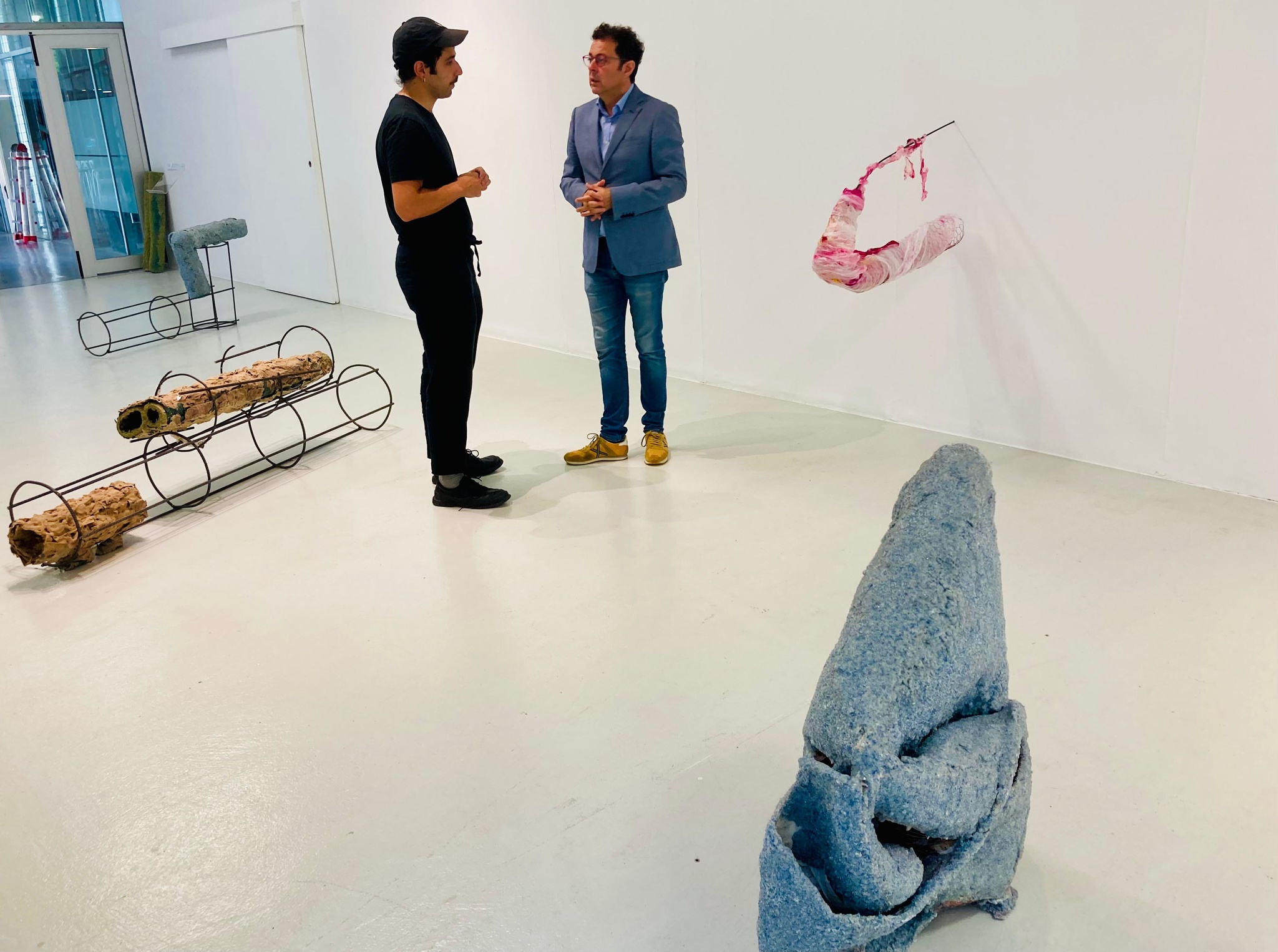 Imagen de la visita del director general del Instituto de las Industrias Culturales y las Artes, Manuel Cebrián, al montaje de la exposición 'Mano de brillo coral' de Víctor Ortuño