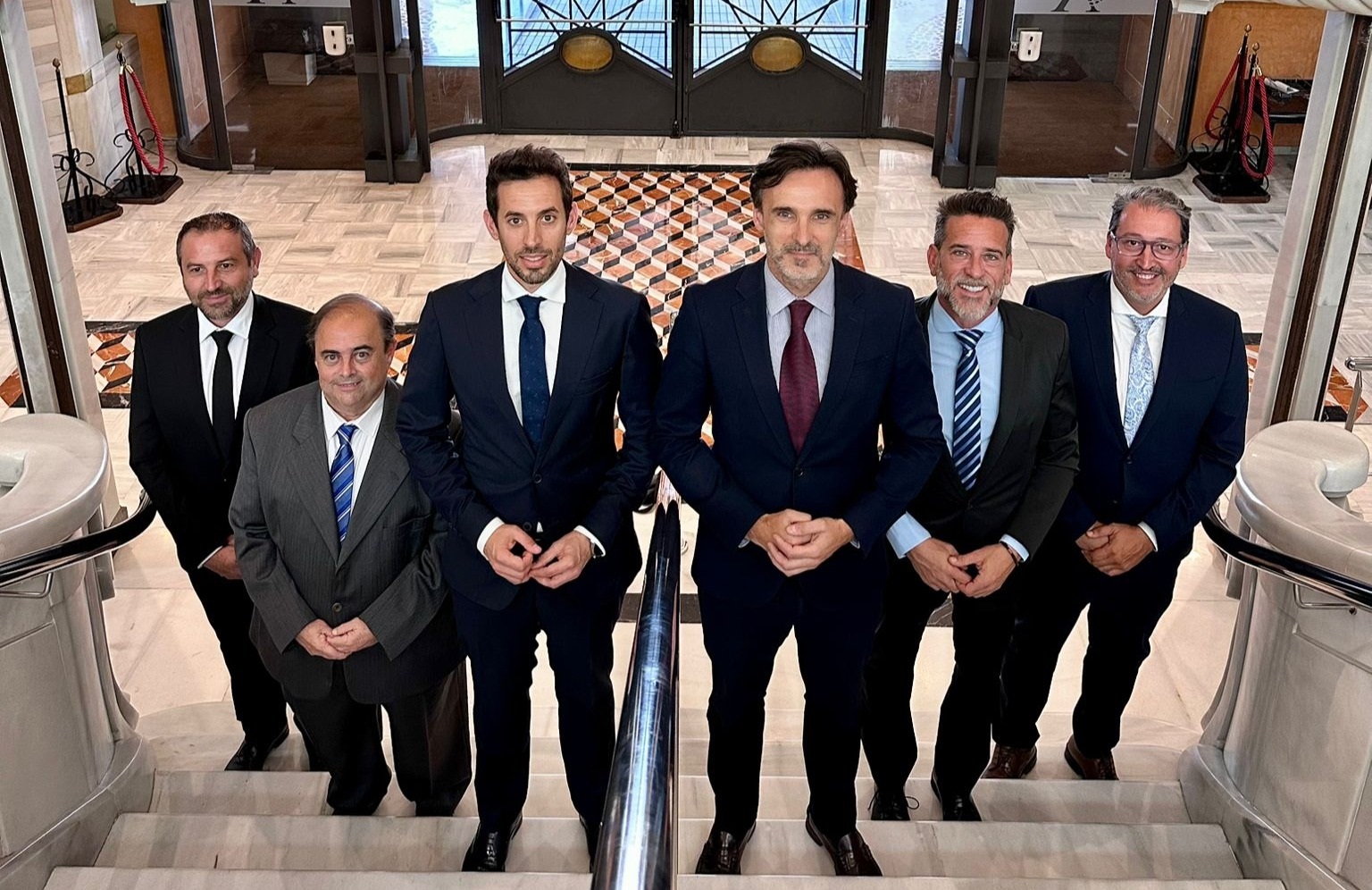 El consejero de Fomento e Infraestructuras, Jorge García Montoro, junto al equipo directivo de su departamento, en la Asamblea Regional