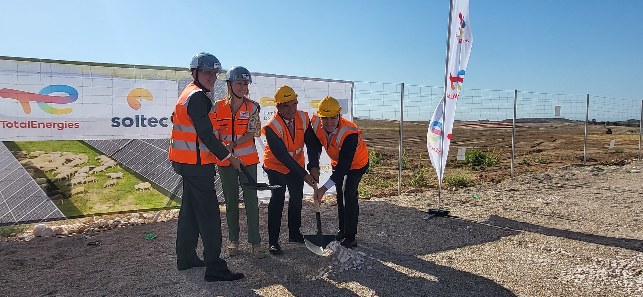 El consejero de Medio Ambiente, Universidades, Investigación y Mar Menor, Juan María Vázquez, durante el acto de colocación de la primera piedra de dos parques solares en la Región, que construirán TotalEnergies y Soltec.