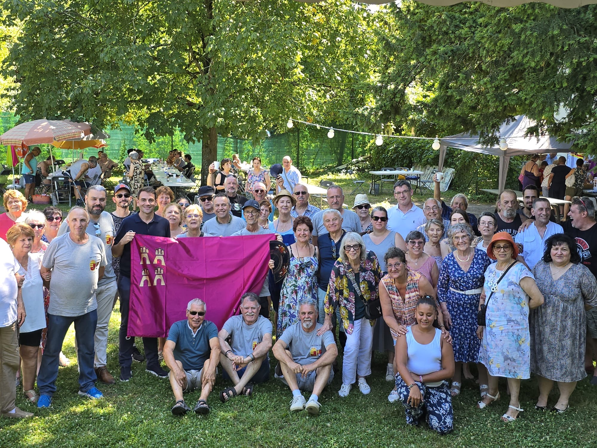 El director general de Acción Exterior y Cooperación, Juan José Almela, y el alcalde de Abanilla, José Antonio Blasco, junto a algunos de los miembros de la Casa Cultural de Murcia en Villeurbanne.