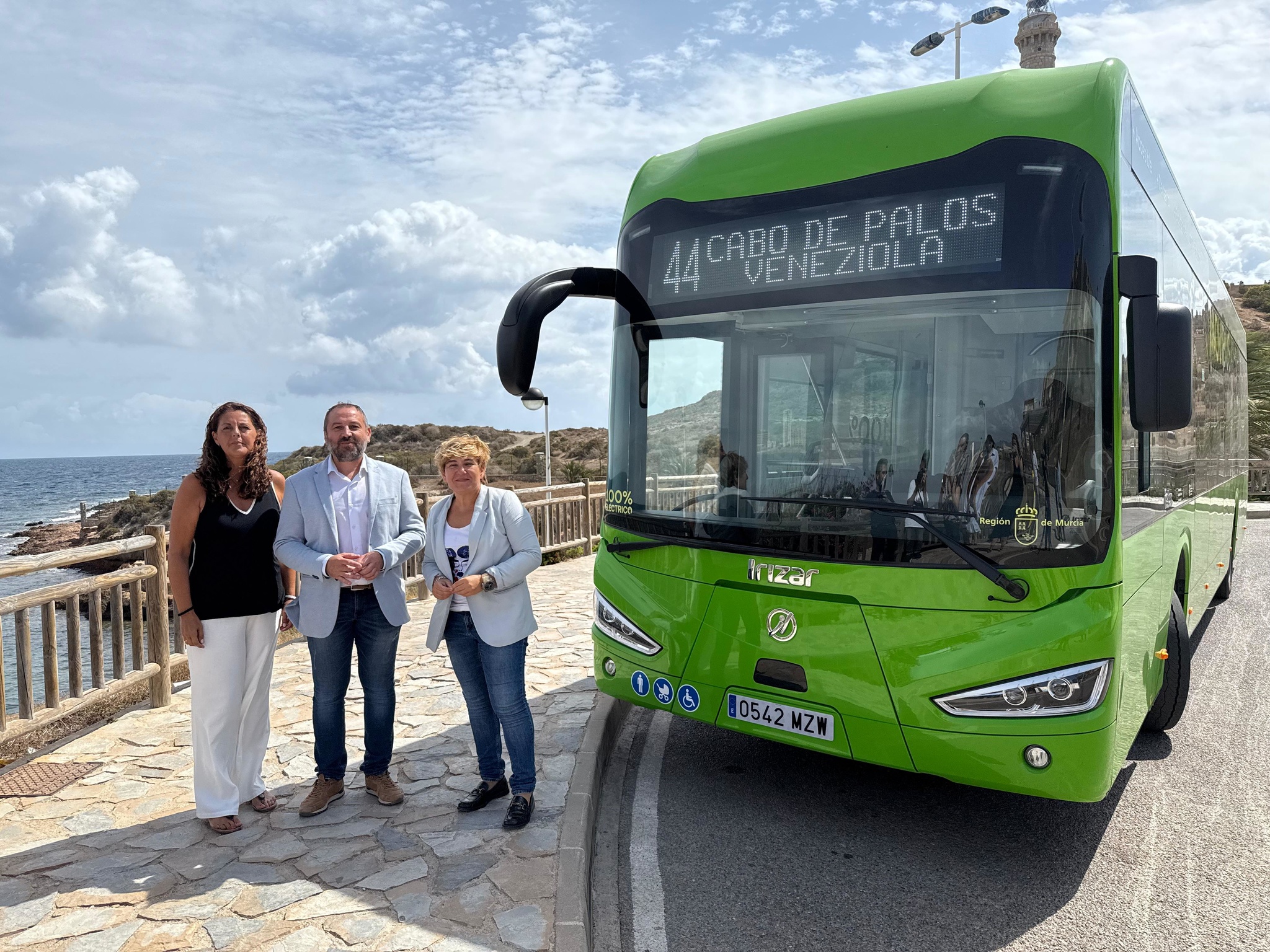 El director general de Movilidad y Transporte, José Antonio Verdú, en la presentación del primer autobús 100% eléctrico de Movibus que realizará la ruta 44 que conecta Cabo de Palos con Veneziola, en La Manga del Mar Menor.