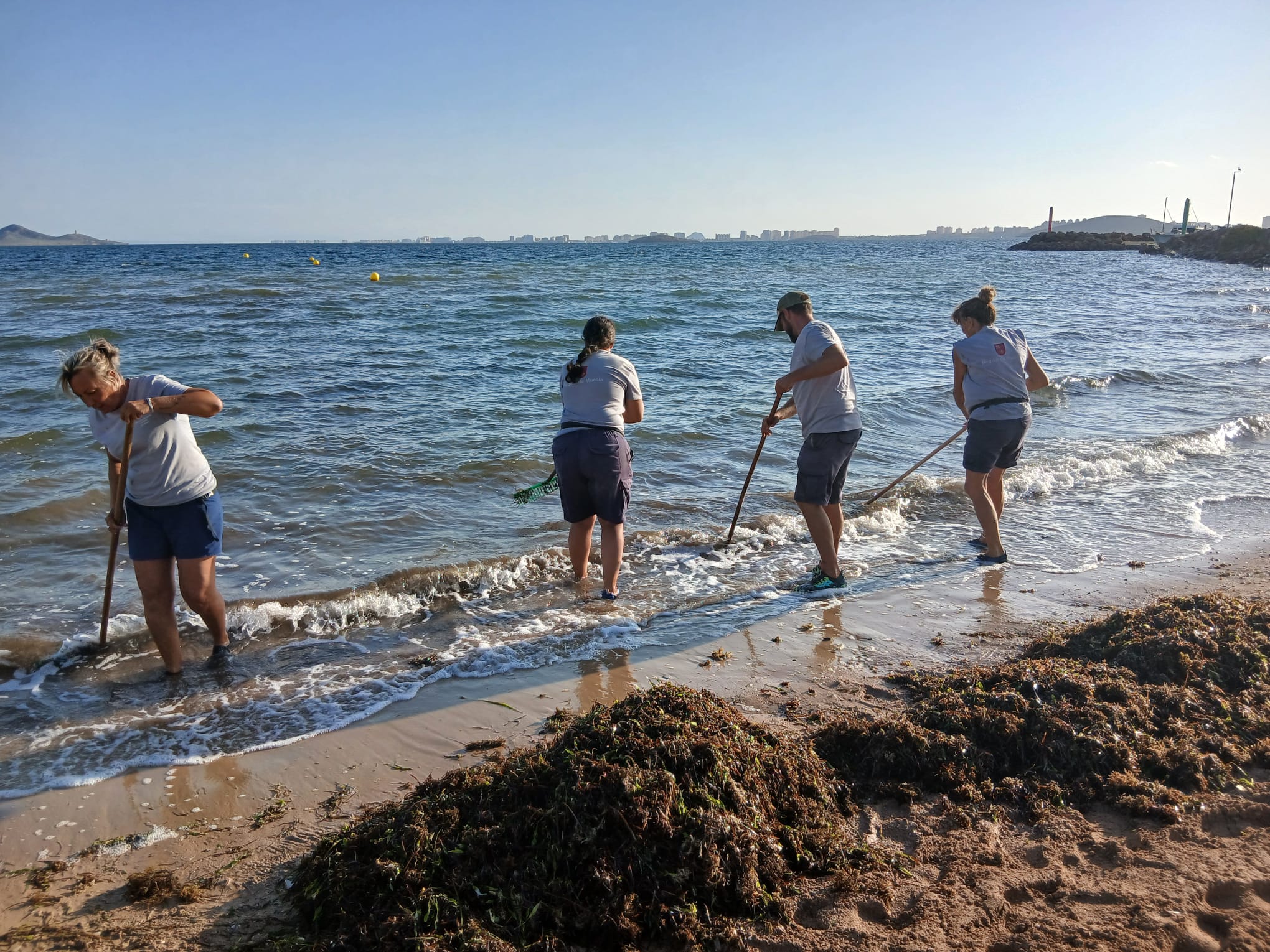 Brigadas de retirada de Biomasa actuando en el Mar Menor