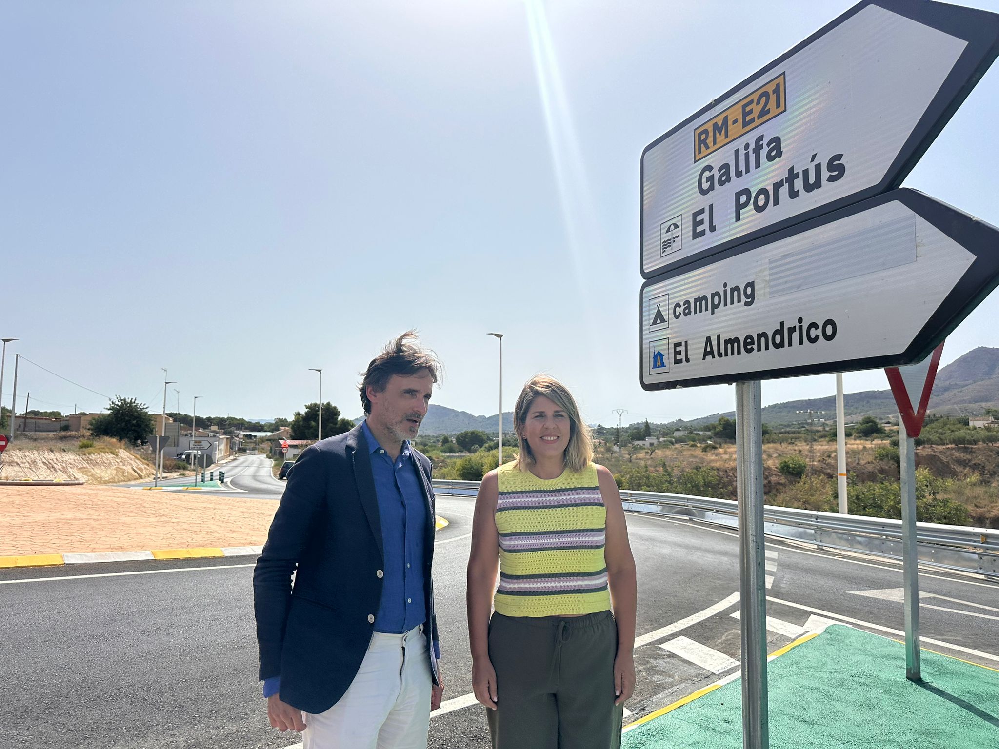 El consejero Jorge García Montoro y la alcaldesa Noelia Arroyo en la visita a la puesta en servicio de la nueva glorieta en El Portús.