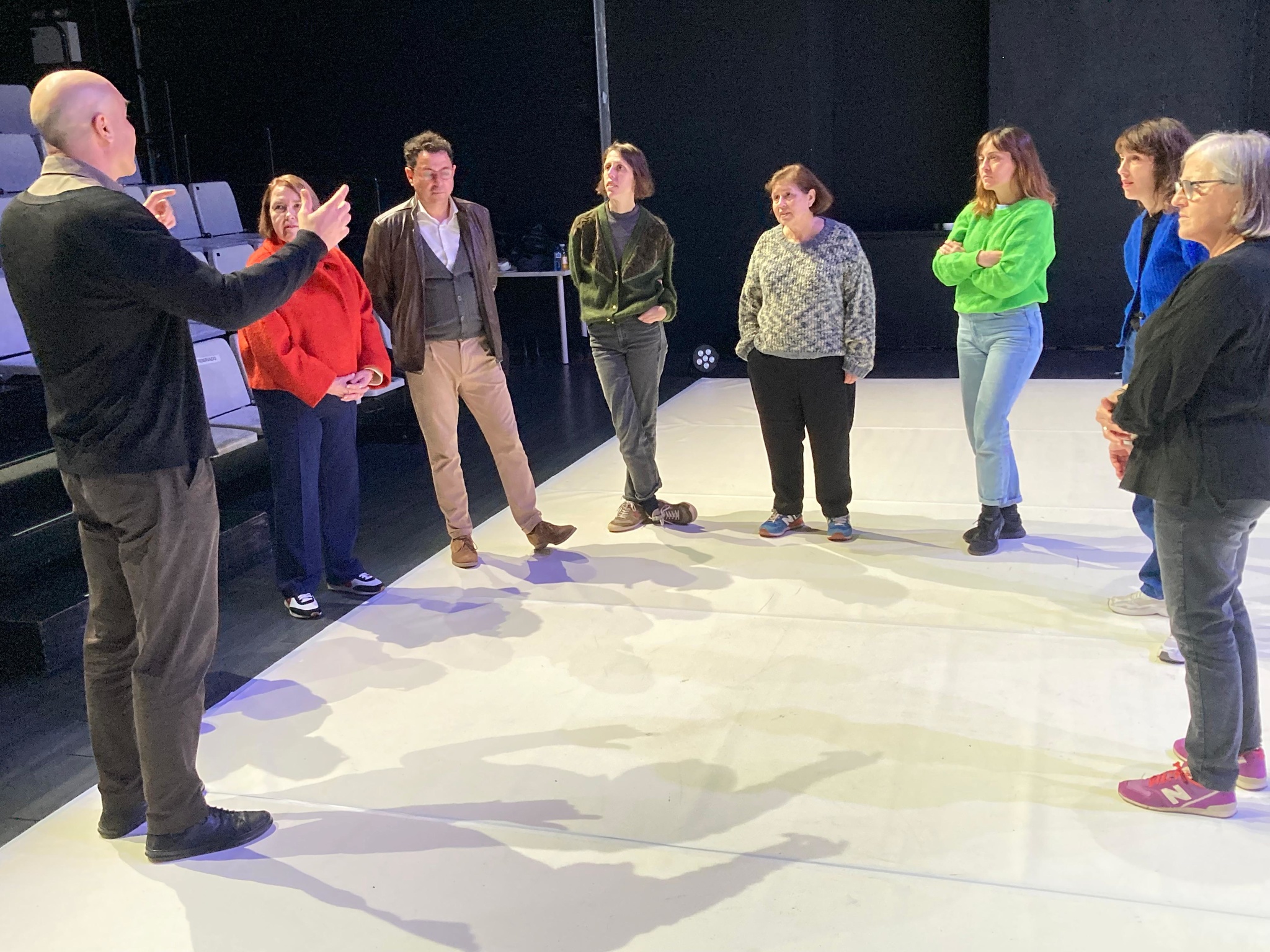 Imagen de la visita del director general del Instituto de las Industrias Culturales y las Artes, Manuel Cebrián, a los preparativos de una de las actividades de Escuela de Espectadores