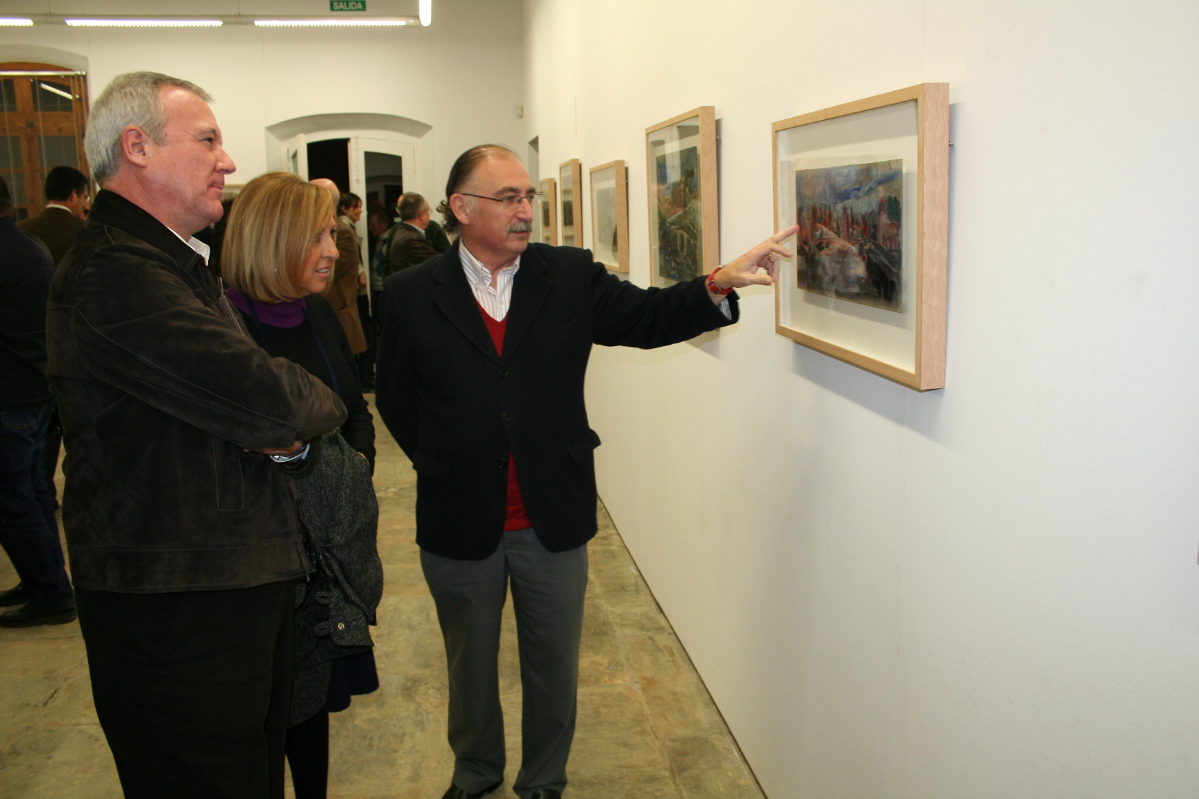 El presidente de la Comunidad Autónoma, Ramón Luis Valcárcel, inauguró anoche la exposición del pintor Juan Bautista Sanz ‘La ciudad no se contaba, era. Esencias sobre cartón’, en la galería de arte La Ribera de Balsicas (Torre Pacheco). En las imágenes, el artista comenta los pormenores de su obra con el presidente Valcárcel y la mujer de éste, Charo Cruz.