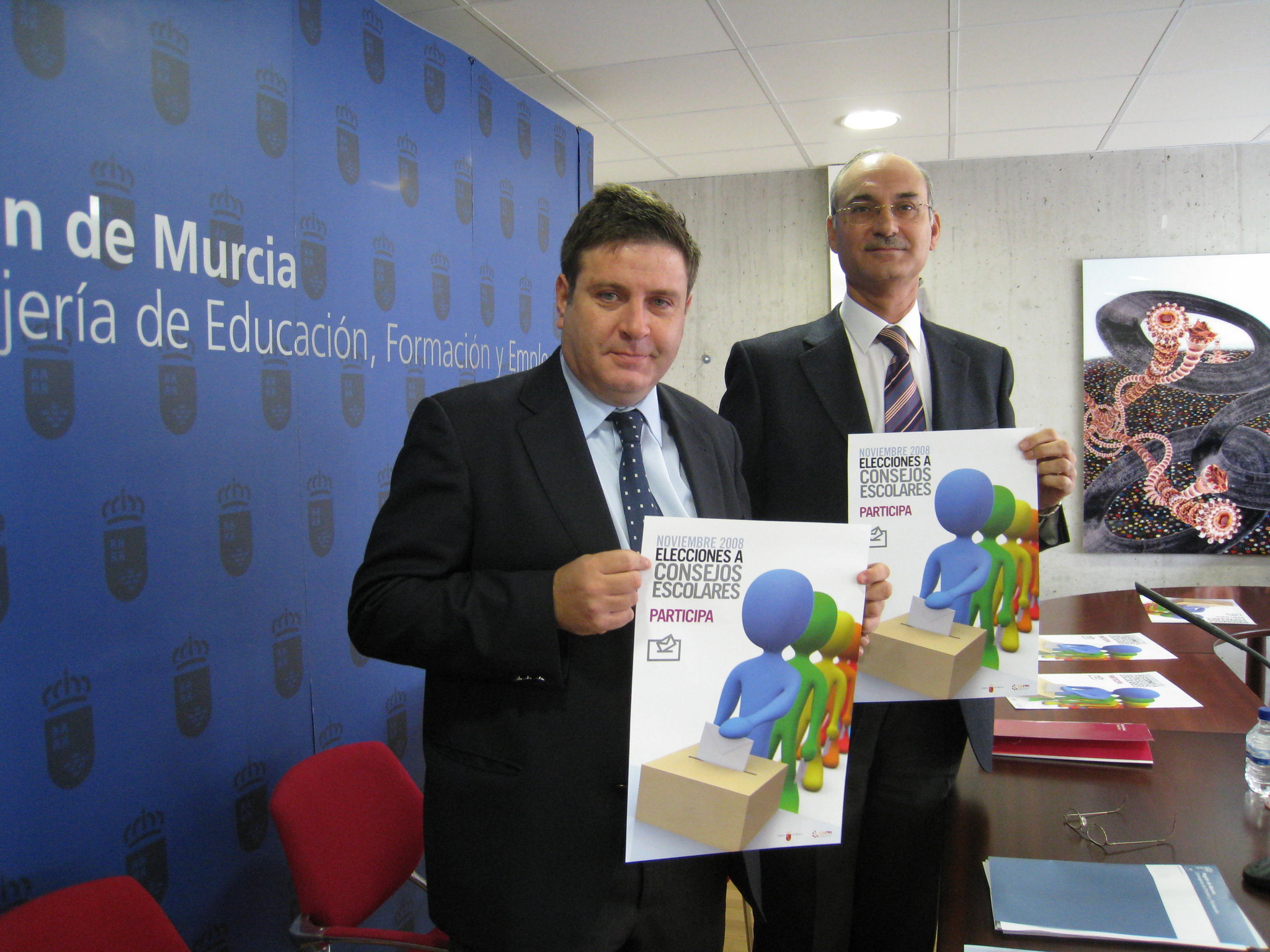 El secretario general de la Consejería de Educación, Formación y Empleo, José Daniel Martín y el presidente del Consejo Escolar de la región, Luis Navarro, presentaron hoy la campaña 'Elecciones a Consejos Escolares 2008'.