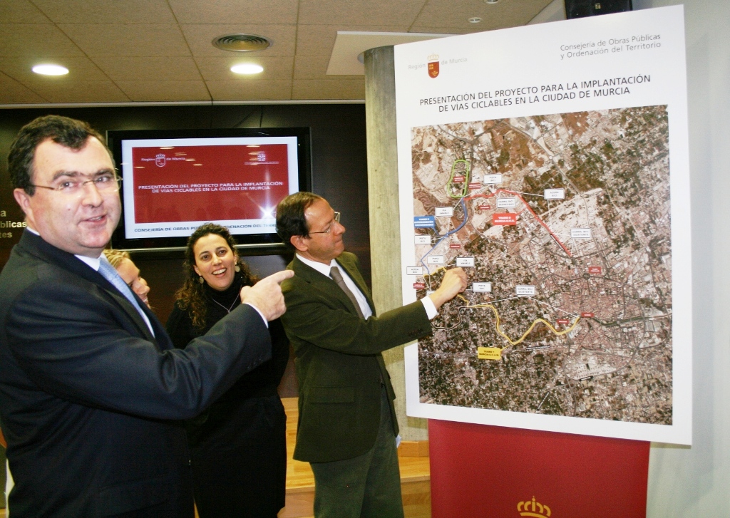 El consejero de Obras Públicas y Ordenación del Territorio, José Ballesta, durante la presentación del proyecto de construcción de nuevos carriles bici en el municipio de Murcia.