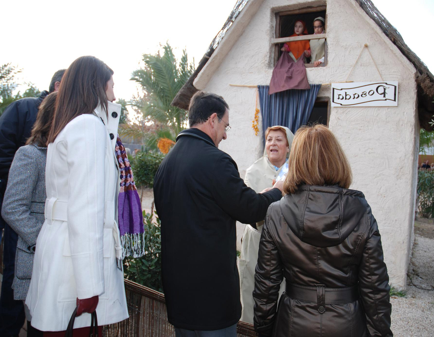 El consejero de Política Social, Mujer e Inmigración, Joaquín Bascuñana, durante la visita al Belén viviente instalado en la pedanía de El Raal, en la que estuvo acompañado de un numeroso grupo de mayores, personas discapacitadas y menores residentes en centros de acogida de la Comunidad Autónoma, así como de miembros del departamento que dirige.