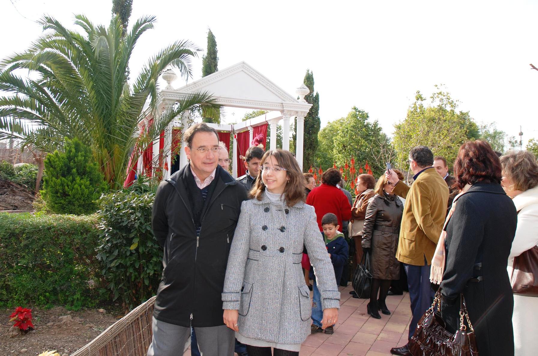 El consejero de Política Social, Mujer e Inmigración, Joaquín Bascuñana, durante la visita al Belén viviente instalado en la pedanía de El Raal, en la que estuvo acompañado de un numeroso grupo de mayores, personas discapacitadas y menores residentes en centros de acogida de la Comunidad Autónoma, así como de miembros del departamento que dirige.