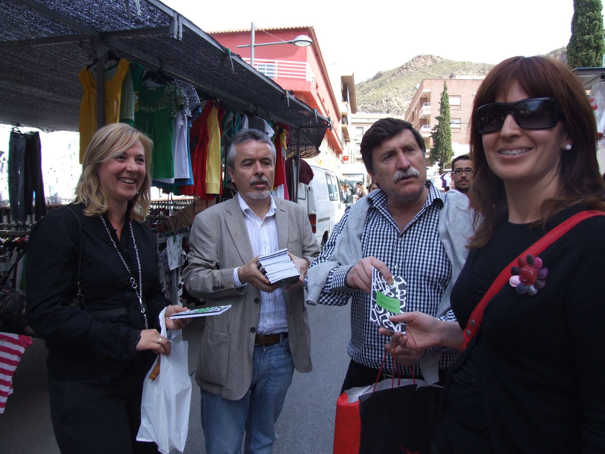Pie de foto: el director general del Libro, Archivos y Bibliotecas, Francisco Giménez, durante el reparto de libros en el mercado municipal de Blanca.