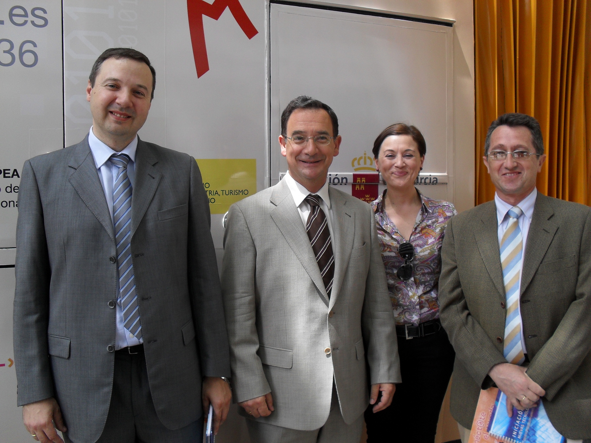 De izquierda a derecha: Diego Pedro García, director general de Telecomunicaciones y Sociedad de la Información, Joaquín Bascuñana, consejero de Política Social, Mujer e Inmigración, Teresa Moreno, Directora del Instituto de la Mujer y Onofre Molino, gerente de la Fundación Integra, durante la presentación del proyecto de alfabetización digital.