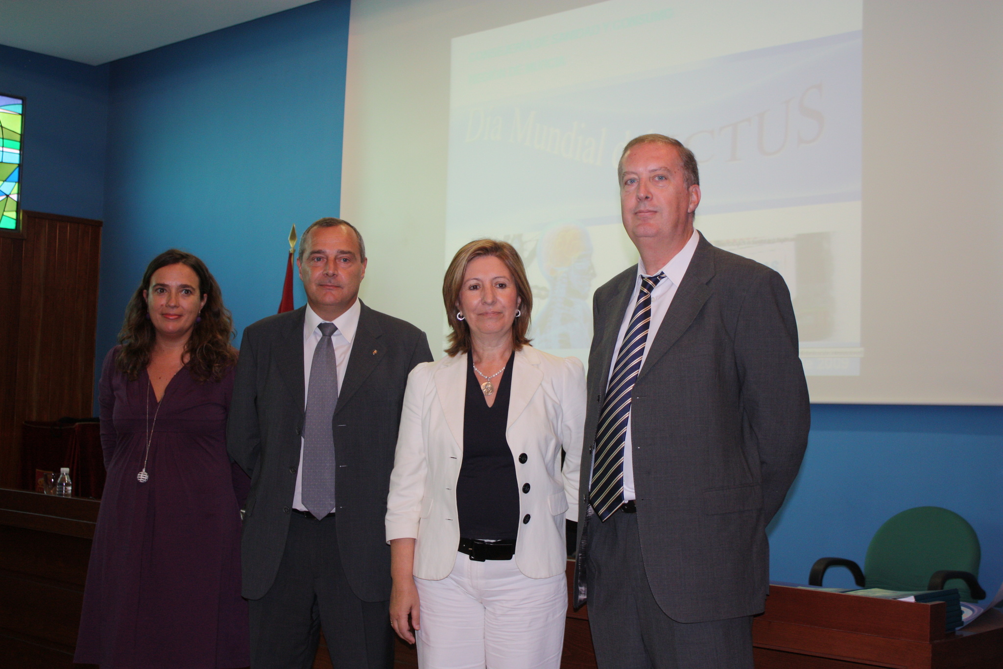 La consejera de Sanidad, María Ángeles Palacios, presentó las acciones del código ictus junto con el director general de Planificación, Ordenación Sanitaria y Farmacéutica e Investigación, José Antonio García, y los coordinadores del Programa de Atención al Ictus en Atención Primaria, Antonio Martínez, y en Atención Hospitalaria, Ana Morales. En la imagen, de izquierda a derecha: Ana Morales, José Antonio García, María Ángeles Palacios y Antonio Martínez.