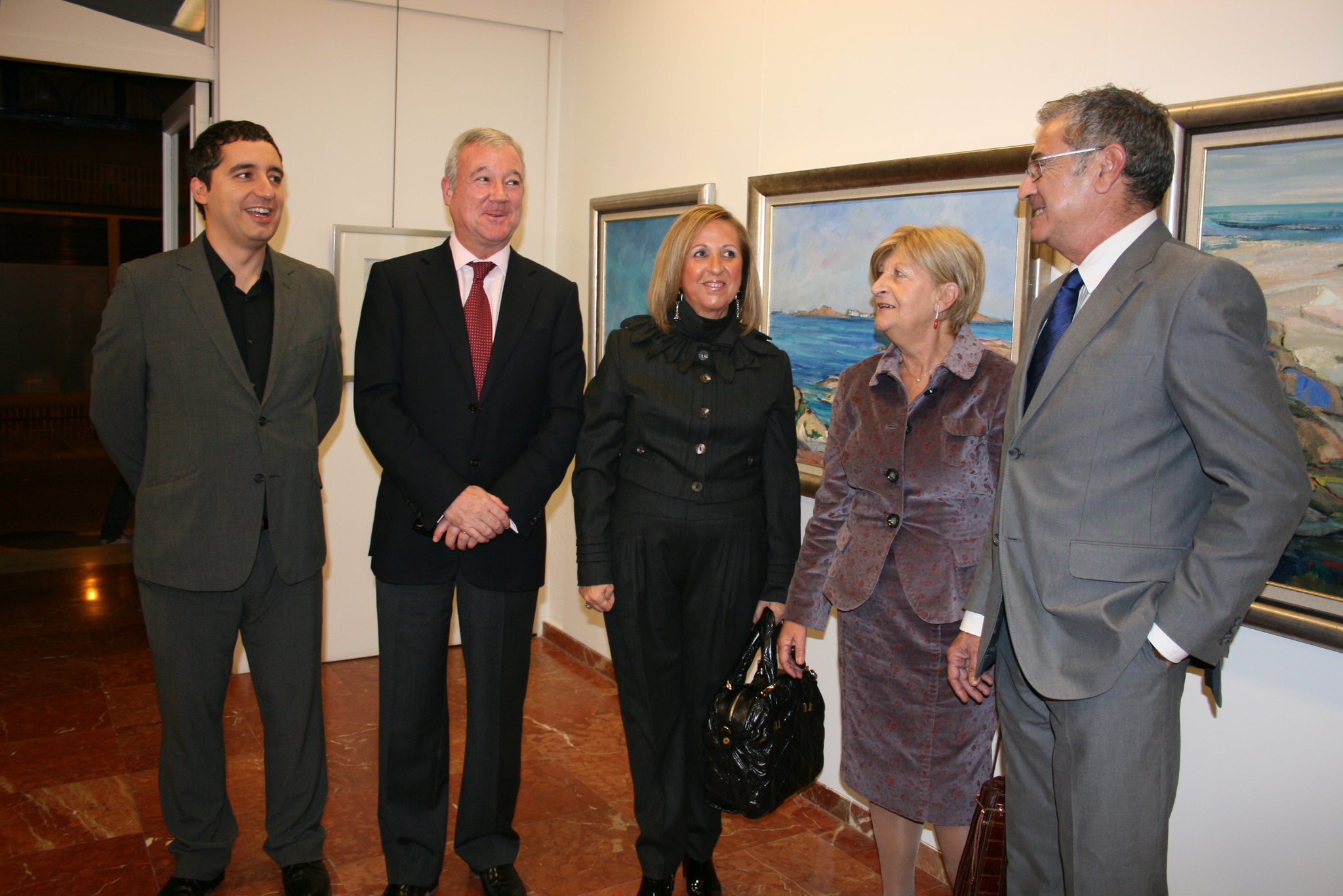 El presidente de la Comunidad, Ramón Luis Valcárcel, inauguró la exposición del pintor Enrique Nieto que se exhibe en la Galería Chys de Murcia. En la imagen, el presidente acompañado por el consejero de Cultura, Pedro Alberto Cruz, y el pintor.