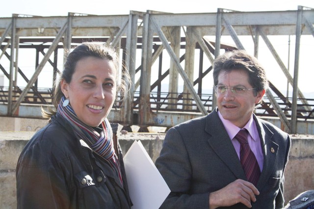 La directora general de Transportes y Puertos, Carmen Sandoval, y el alcalde de Lorca, Francisco Jódar, visitan las obras de supresión del paso a nivel que está ejecutando la Consejería de Obras Públicas en Lorca.