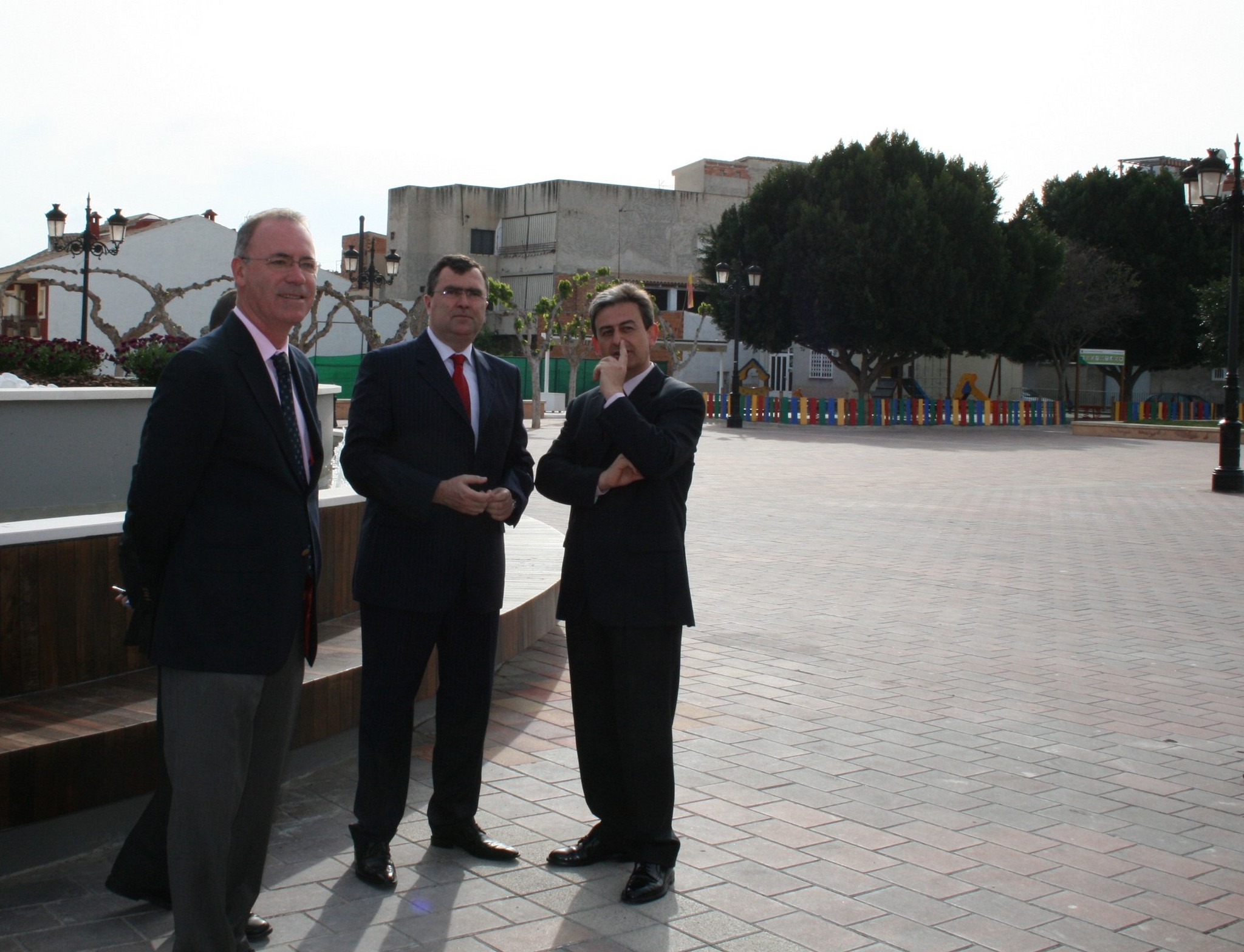 El consejero de Obras Públicas, José Ballesta, el alcalde de Alguazas, José Antonio Fernández, y el director general de Territorio y Vivienda, Antonio Navarro en la inauguración de la plaza.