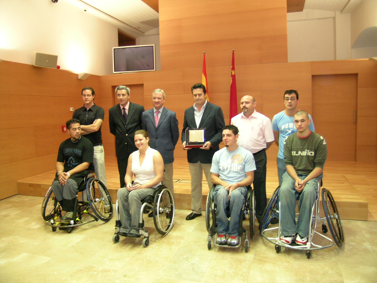 Ramón Luis Valcárcel, recibe al equipo Polaris World Club Baloncesto Murcia tras su reciente ascenso a la Liga ACB y al Polaris Baloncesto en Silla de Ruedas por su ascenso a División de Honor