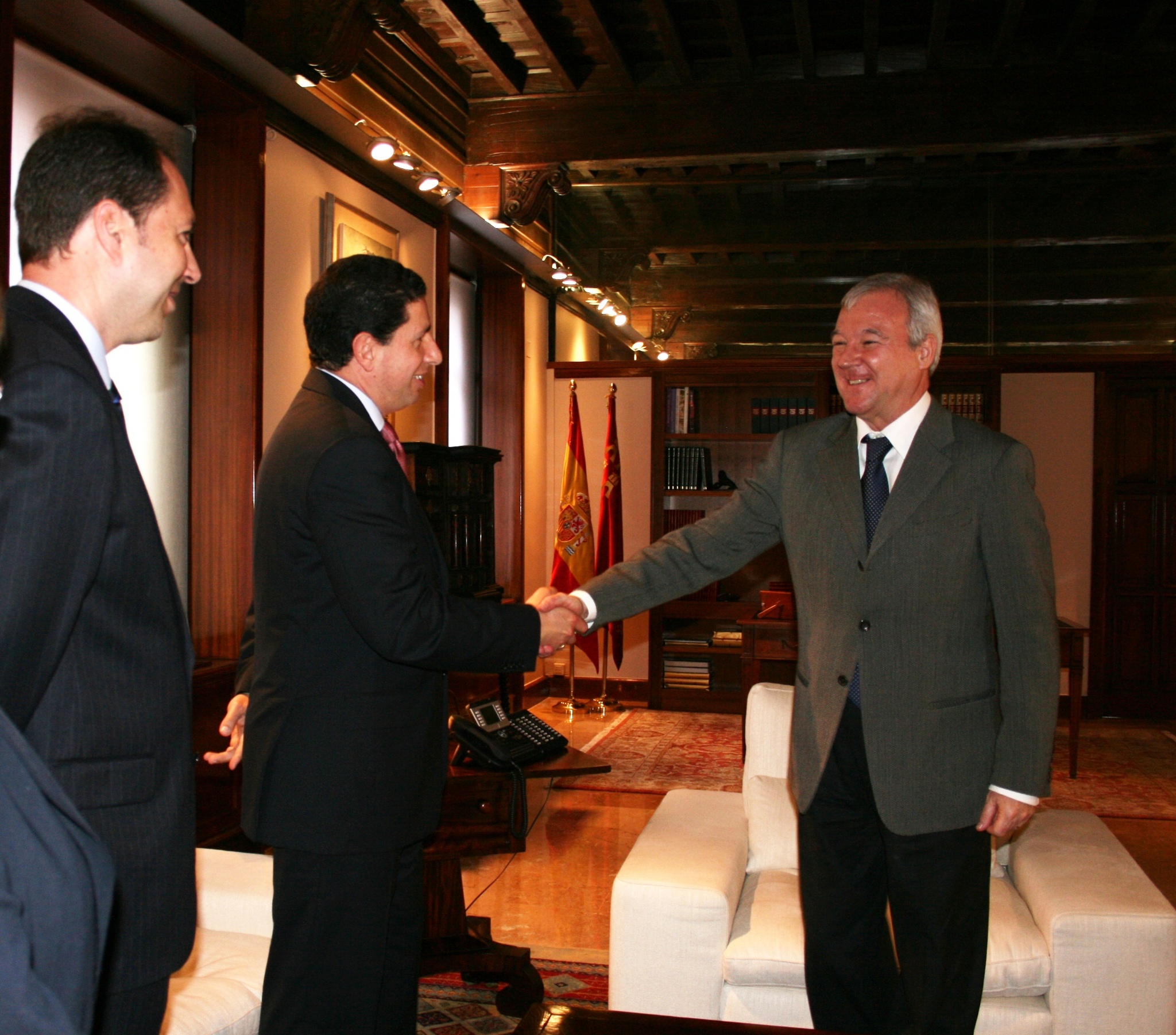 El jefe del Ejecutivo murciano recibió hoy en el Palacio de San Esteban, en Murcia, al decano del Colegio Oficial de Ingenieros de Caminos, Canales y Puertos de la Región de Murcia, Antonio Sevilla, para la presentación oficial de la nueva junta rectora.