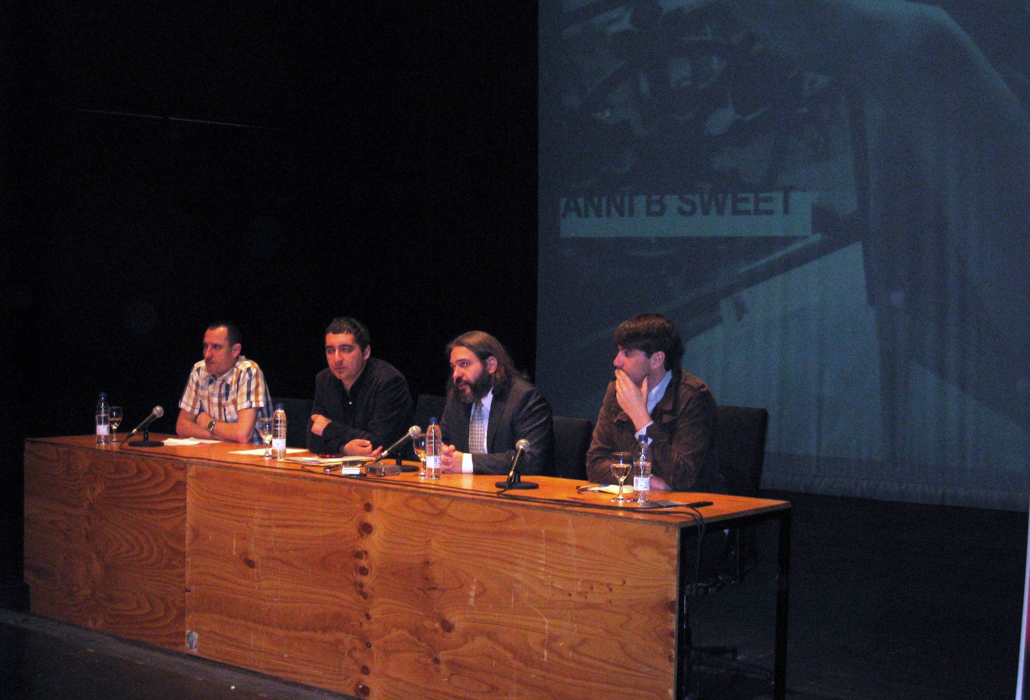Pie de foto: De izquierda a derecha, el director musical del festival SOS 4.8, Albert Salmerón, el consejero de Cultura y Turismo, Pedro Alberto Cruz, el vicerrector de Extensión Universitaria, Francisco Guillermo Díaz, y el responsable del área de Voces del citado festival, Bernat Dedeu.