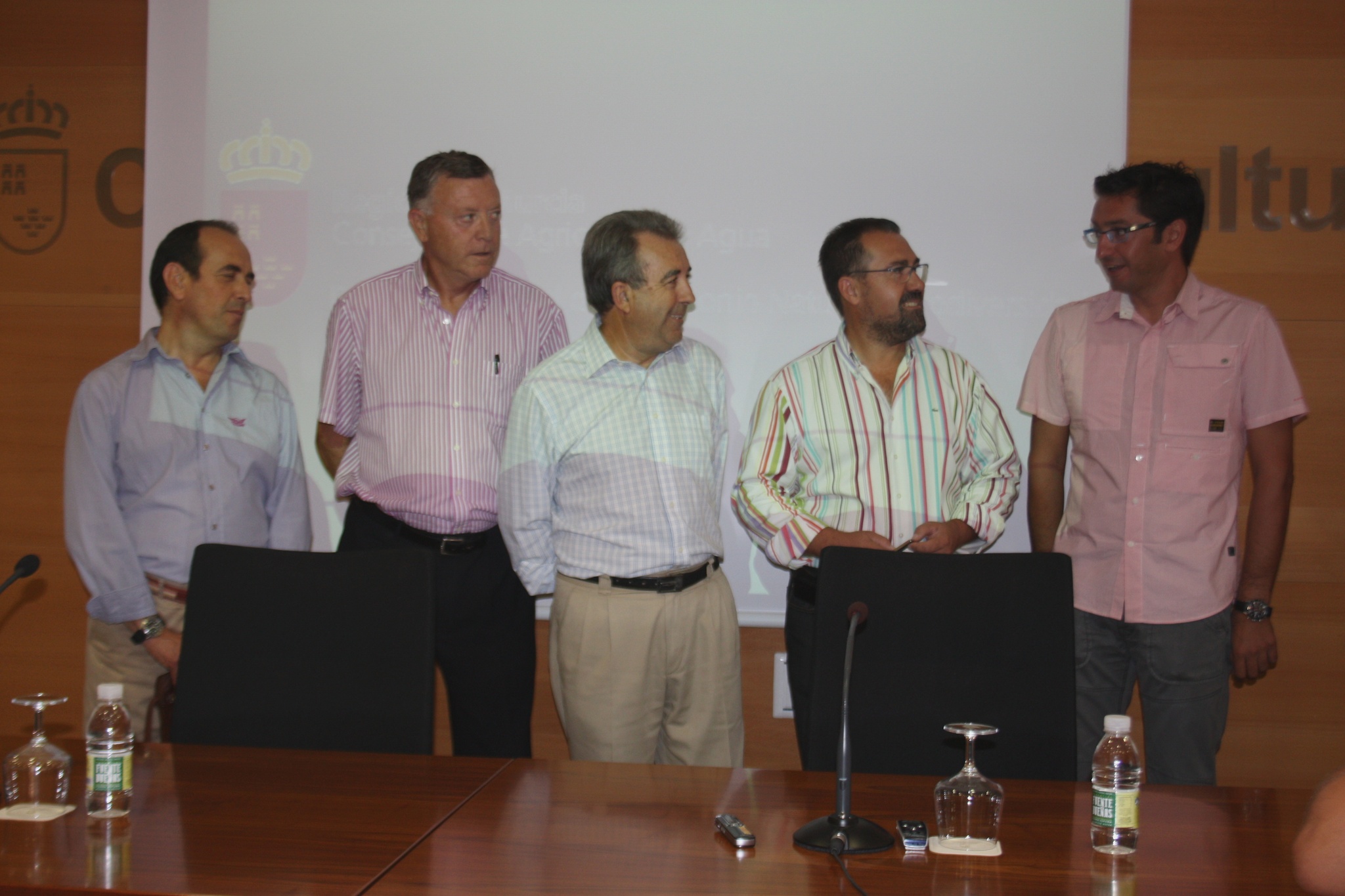 El consejero de Agricultura y Agua, Antonio Cerdá, ofreció hoy un informe de evalaución de los valores naturales afectados por el incendio de la Sierra del Molino de Caslasparra, acompañado del director general de Patrimonio Natural y Biodiversidad, Pablo Fernández (2d), y los jefes de servicio Justo García (1i), Remigio Masia (2i), y Juan de Dios Cabezas (1d).