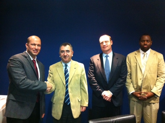 El consejero de Justicia y Seguridad Ciudadana, Manuel Campos, mantuvo una reunión con responsables europeos de la compañía Ford Motor, quienes le presentaron un novedoso sistema de llamada de emergencia al 1-1-2 que se realizaría desde vehículos que sufrieran un accidente.