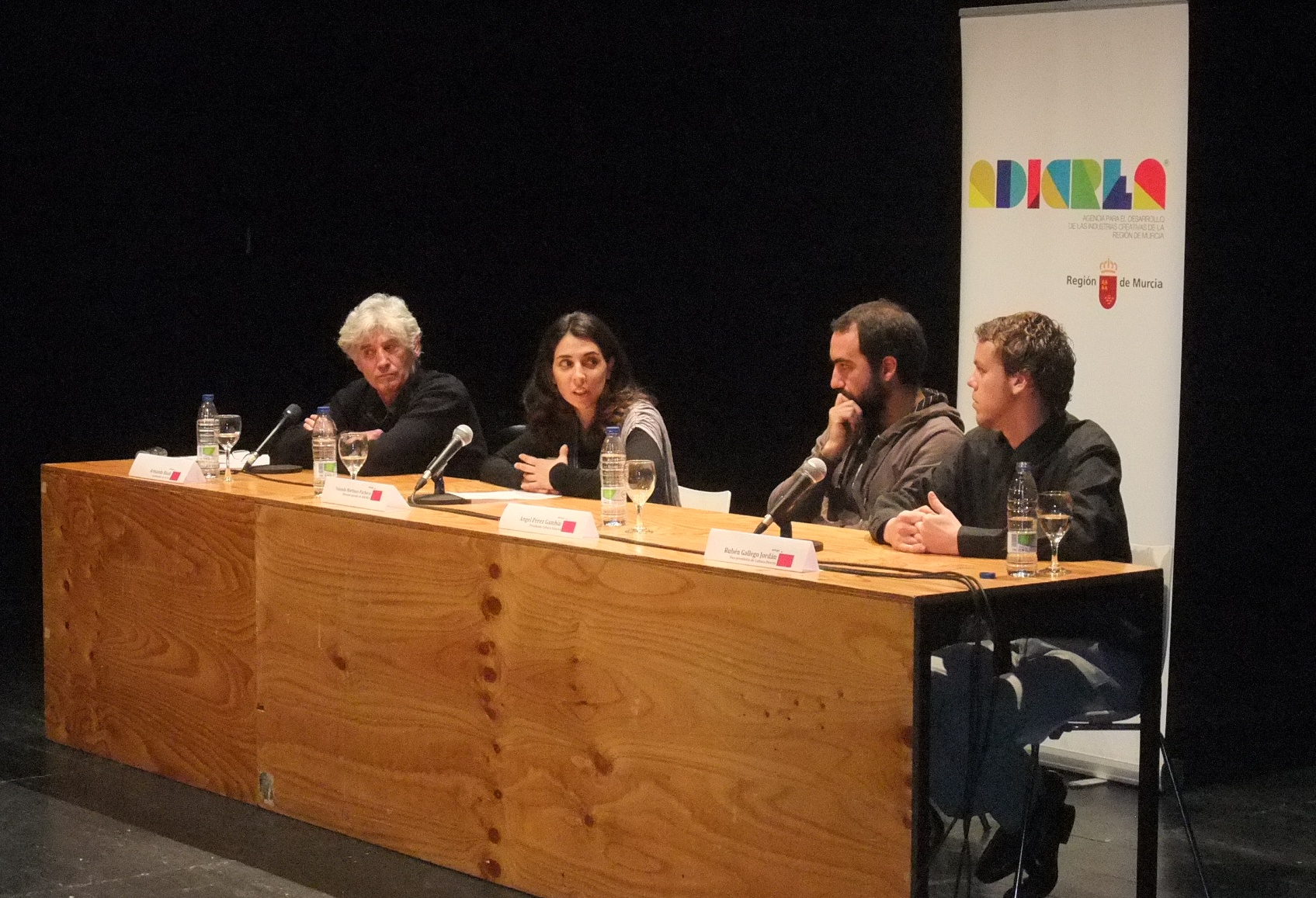 En la foto, de izquierda a derecha, el coordinador de la Asociación Estatal de Salas de Música en Directo, Armando Ruah, la directora de Adicrea, Yolanda Martínez-Pacheco, y el presidente y el vice-presidente de la nueva asociación de Salas y Promotores de Conciertos de la Región de Murcia, Ángel Pérez Gambín y Rubén Gallego Jordán, respectivamente.