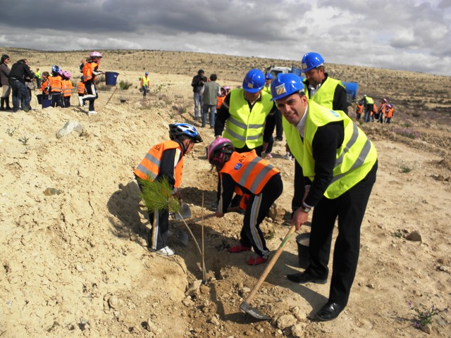 El director general de Industria, Energía y Minas, José Francisco Puche, participa en la jornada de reforestación de la cantera de áridos ‘Los Pajeles’ de Lorca, en la que se plantaron 300 pinos, como parte de plan de restauración ambiental de la explotación minera.