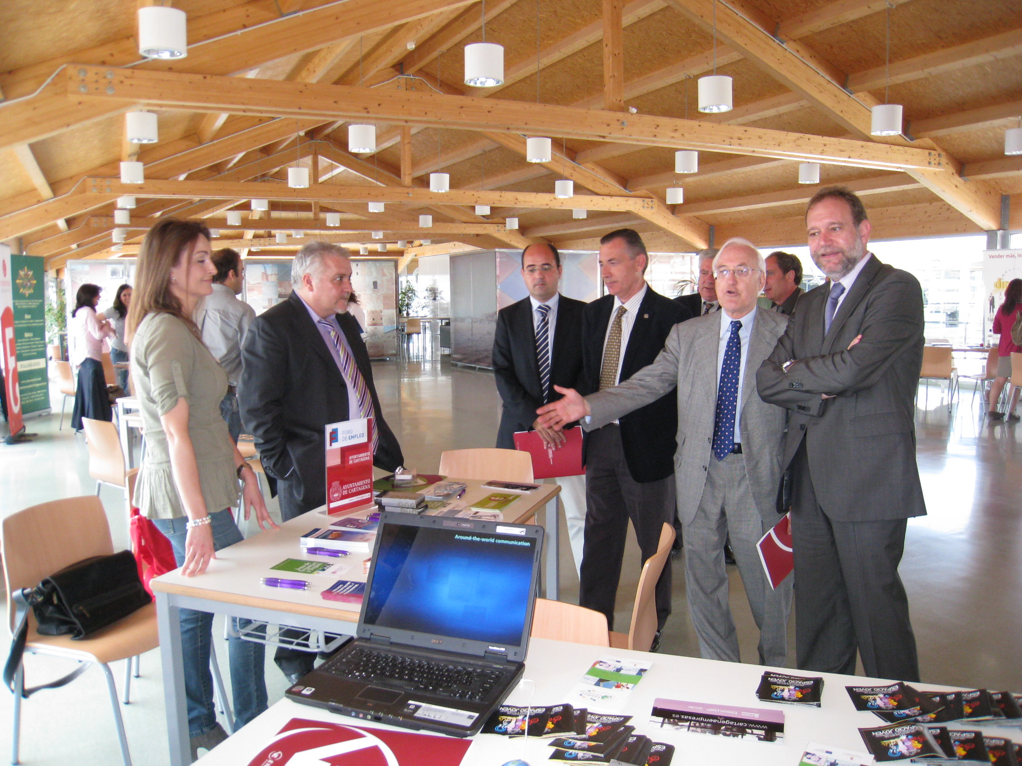 El consejero de Educación, Formación y Empleo, Constantino Sotoca, visita los stand del Foro de Empleo Universitario de Cartagena 2011, junto con el director gerente de la Fundación Universidad Empresa de la Región de Murcia, Enrique Egea