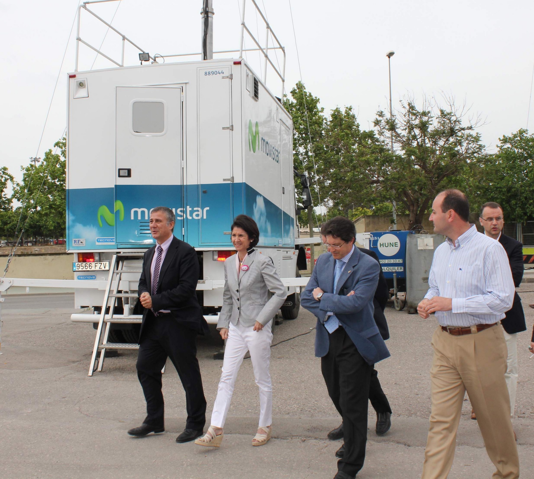 De izquierda a derecha, el director autonómico de Telefónica en la Región, Ángel Lloret; la consejera Inmaculada García; el alcalde de Lorca, Francisco Jódar y el concejal de Juventud, Fomento, Vivienda y Sociedad de la Información del Ayuntamiento de Lorca, Joaquín Ruiz, durante la visita que realizaron hoy a la Estación Base Móvil de Telefónica, instalada en el municipio lorquino para reforzar la cobertura de telefonía en el municipio tras los seísmos ocurridos el pasado 11 de mayo.