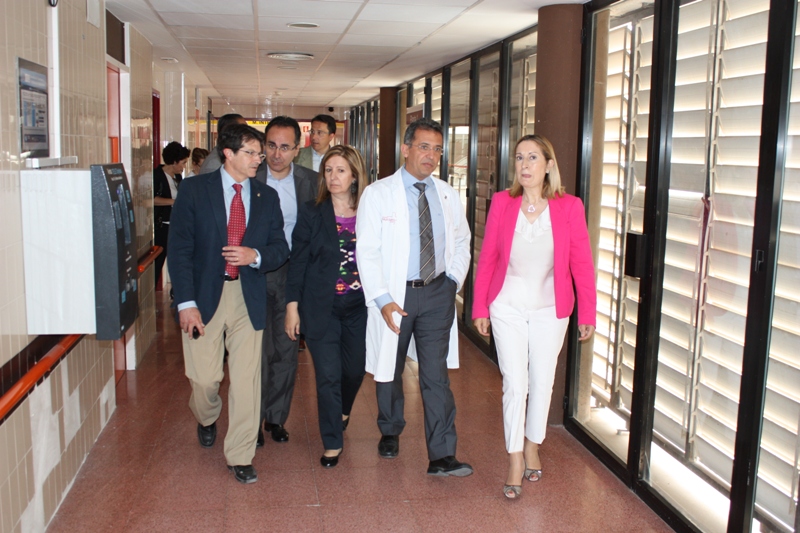 La consejera de Sanidad y Consumo en funciones, María Ángeles Palacios (c), junto al secretario general de su Departamento, José Luis Gil (2i); el director gerente del Área de Salud III Lorca, José Luis Albarracín (2d); el alcalde de Lorca, Francisco Jódar (1i), y vicepresidenta segunda del Congreso de los Diputados, Ana Pastor (1d), visitaron las instalaciones del Hospital Rafael Méndez de Lorca tras los terremotos del pasado mes de mayo.