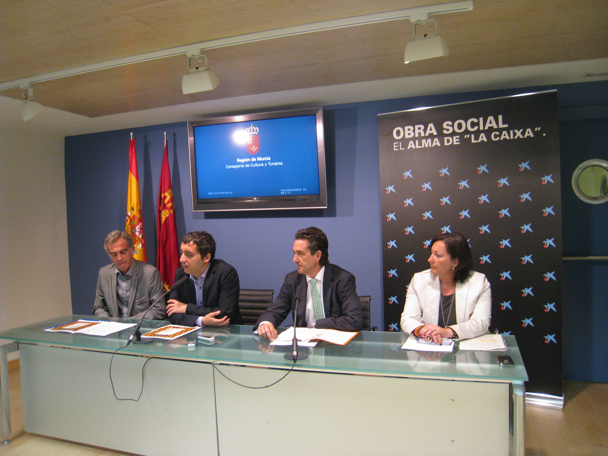 De izquierda a derecha: el director del Auditorio y Centro de Congresos Víctor Villegas, Antonio Contreras, el consejero de Cultura y Turismo, Pedro Alberto Cruz, el delegado general de 'La Caixa' en Alicante y Murcia, Víctor Guardiola y la coordinadora del concierto 'La misa de la Coronación de W. A. Mozart', Yolanda Altimiras.