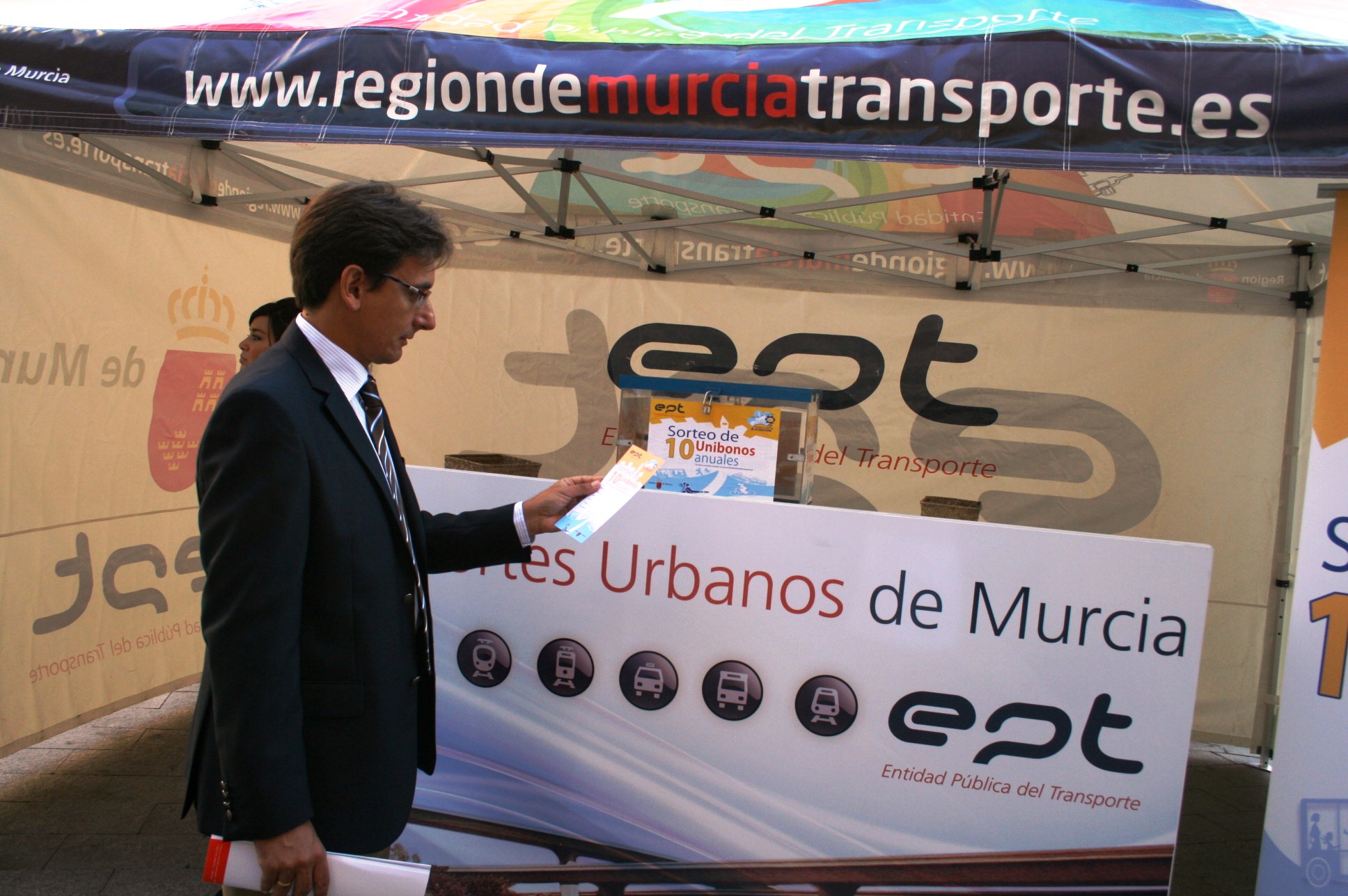 El director gerente de la Entidad Pública del Transporte, Luis Lorente, visita la carpa de la Semana Europea de la Movilidad