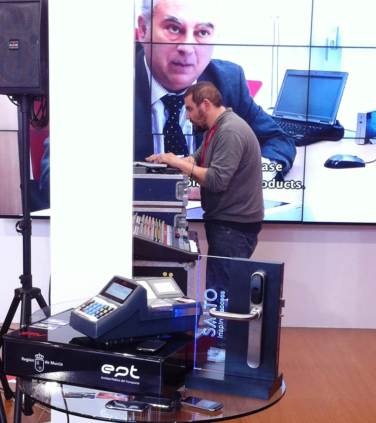 Muestra de distintos dispositivos de la Entidad Pública del Transporte en el Mobil World Congress de Barcelona.
