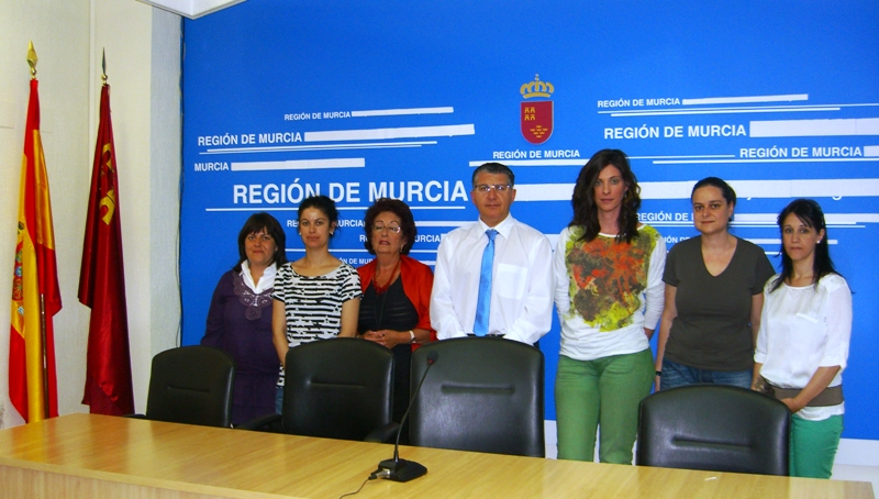 El director general de Pensiones, Valoración y Programas de Inclusión, Juan Castaño, junto a miembros de su Departamento y representantes de Cáritas Región de Murcia, tras la reunión de trabajo mantenida hoy con este colectivo.