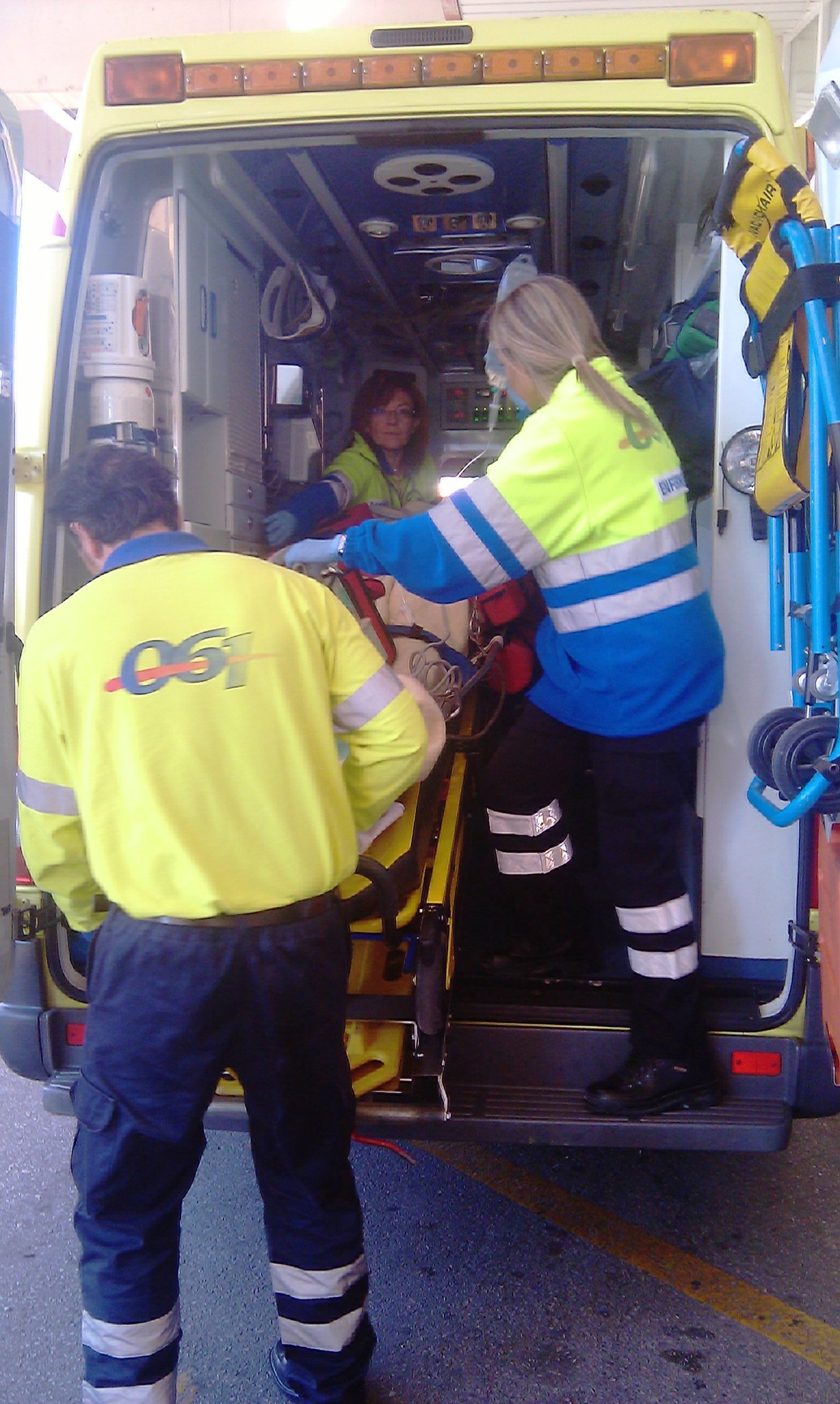Efectivos de la Gerencia de Urgencias y Emergencias Sanitarias 061 de la Región de Murcia en una Unidad Móvil de Emergencia