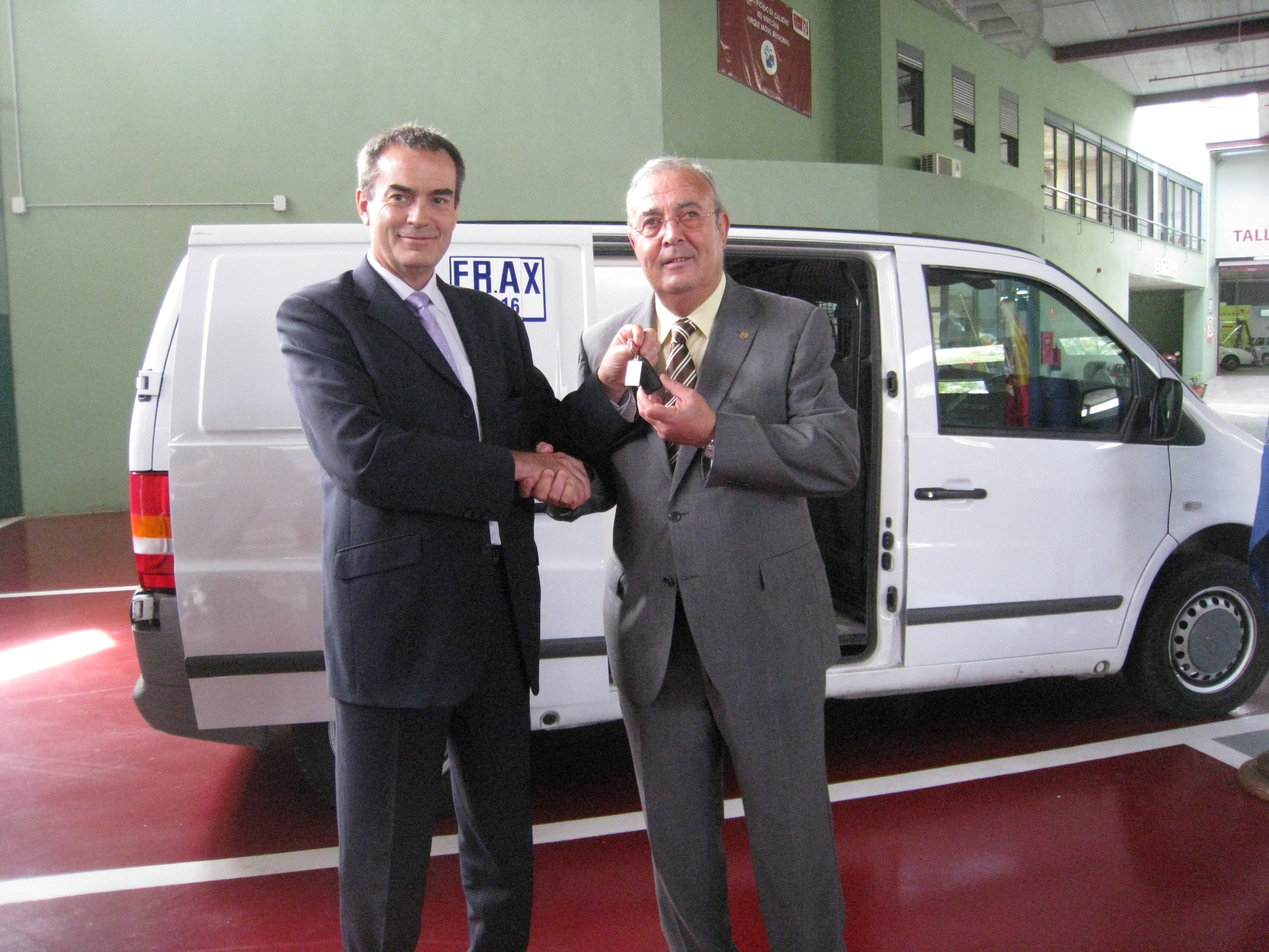 El director general de Patrimonio, Informática y Telecomunicaciones, Eduardo Linares, entregó hoy al director Diocesano de Cáritas de Cartagena, Jose Luís Leante, las llaves de un vehículo frigorífico para labores humanitarias de recogida y distribución de alimentos frescos y perecederos a todas las unidades de Cáritas Parroquiales de la Región.