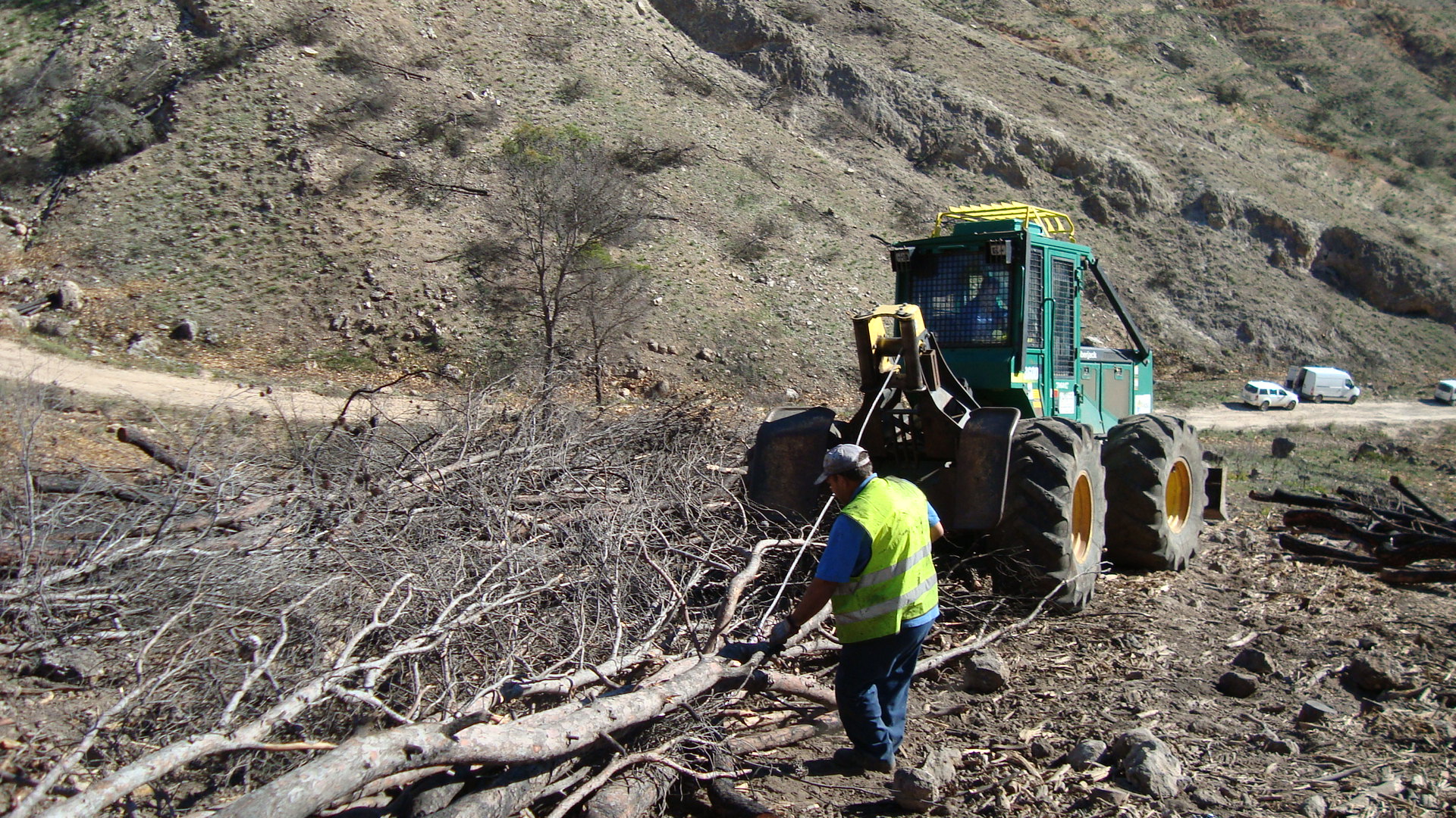 Las actuaciones se están centrando en la corta, retirada y triturado de la madera para evitar el daño al regenerado natural, y la conservación de los suelos para prevenir la escorrentía, erosión y desertificación de la zona.