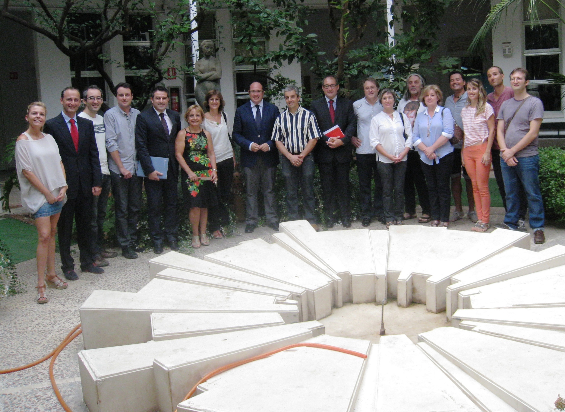 Fotografía de familia de los docentes de la Escuela de Arte con parte del equipo directivo de la Consejería de Educación.