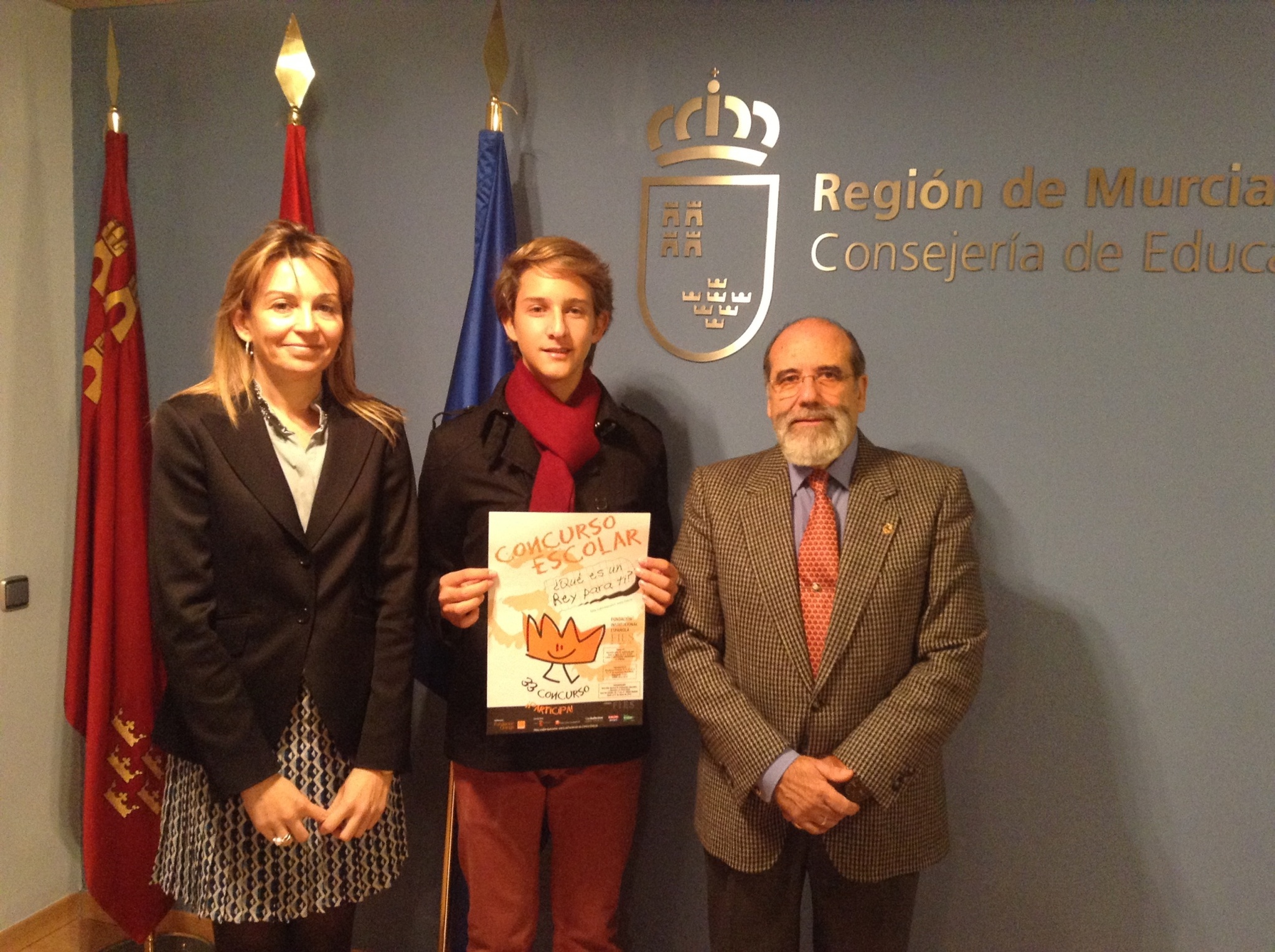 En la imagen, la directora general de Ordenación Educativa y Atención a la Diversidad, Begoña Iniesta, el delegado de la Fundación Institucional Española, Antonio-Manuel Martínez, y el ganador de la fase regional del certamen ‘¿Qué es un Rey para ti?’, Miguel del Moral Sánchez.