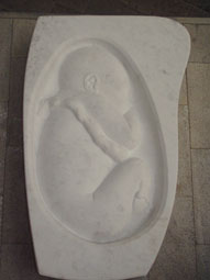 Medidas: 67 cm. x 92 cm. x 12 cm.Técnicas: dibujo, embaste, tallado, lijado y acabado.Materiales: mármol de Carrara.